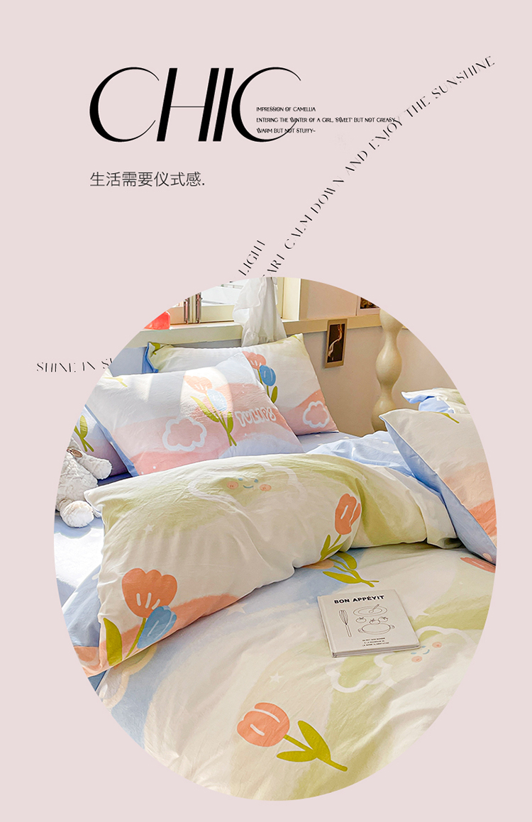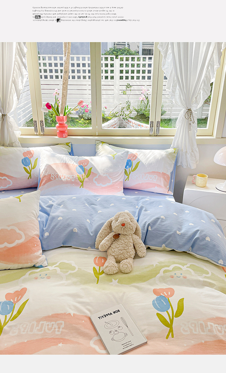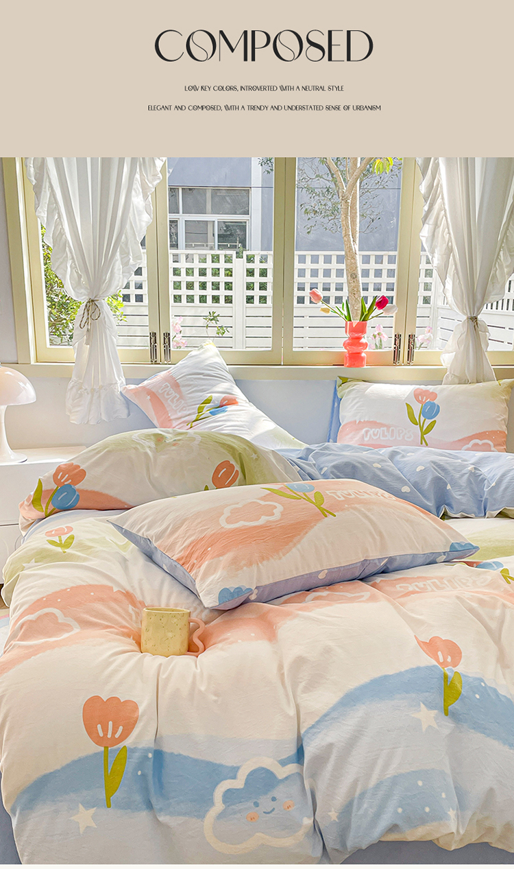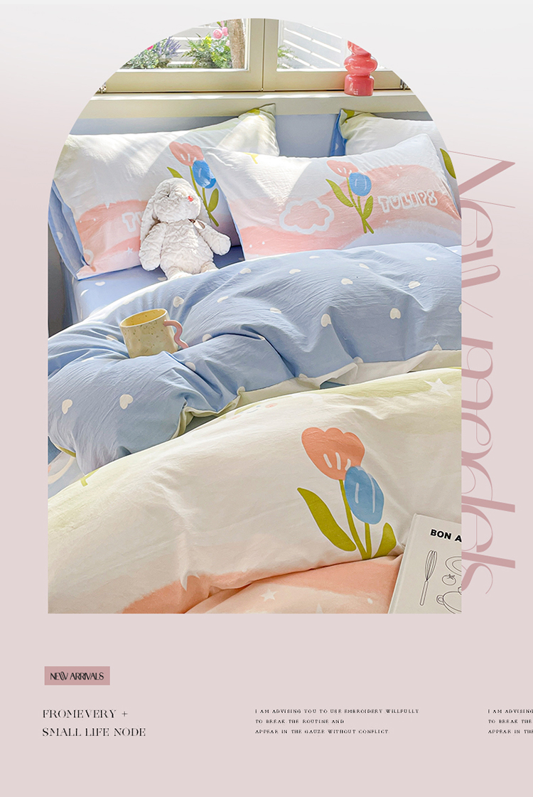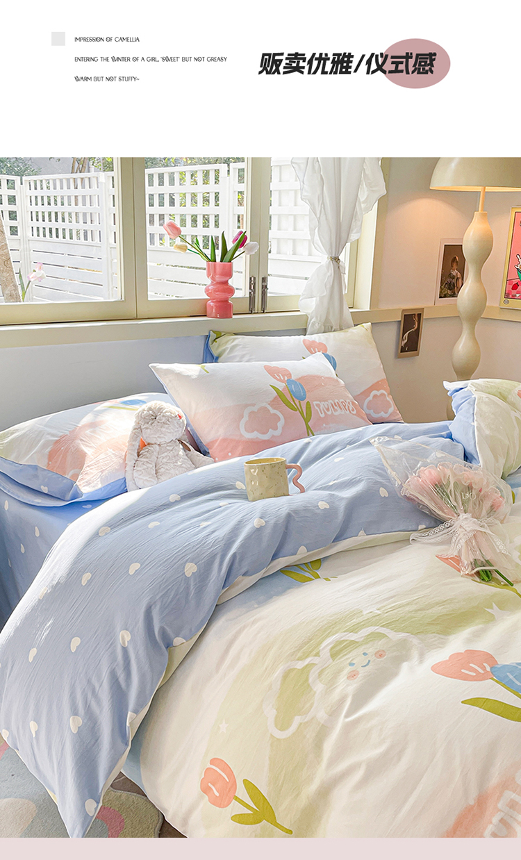 当前位置: 91家纺网 > 商品网购 > 床品套件 > 四件套 > 水洗棉四件套 > 盛秋家纺 2026新款水洗棉印花四件套-卡通系列 彩虹+蓝爱心