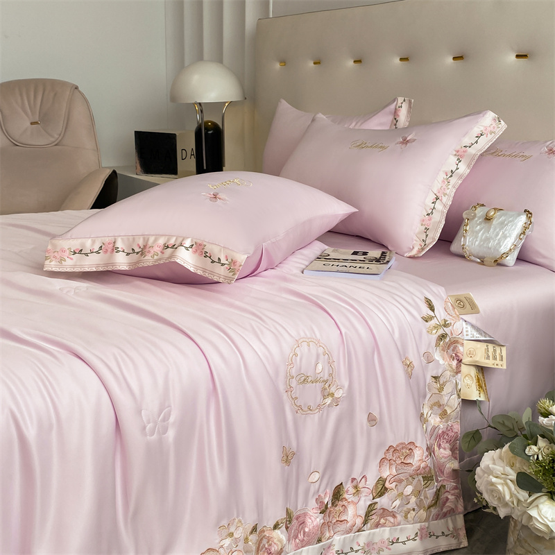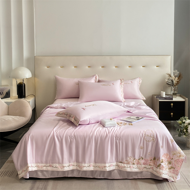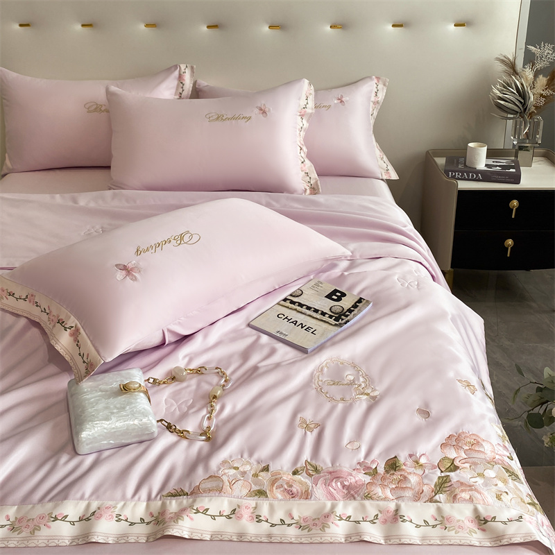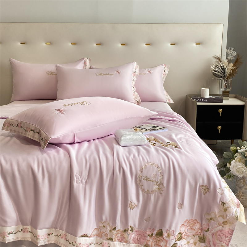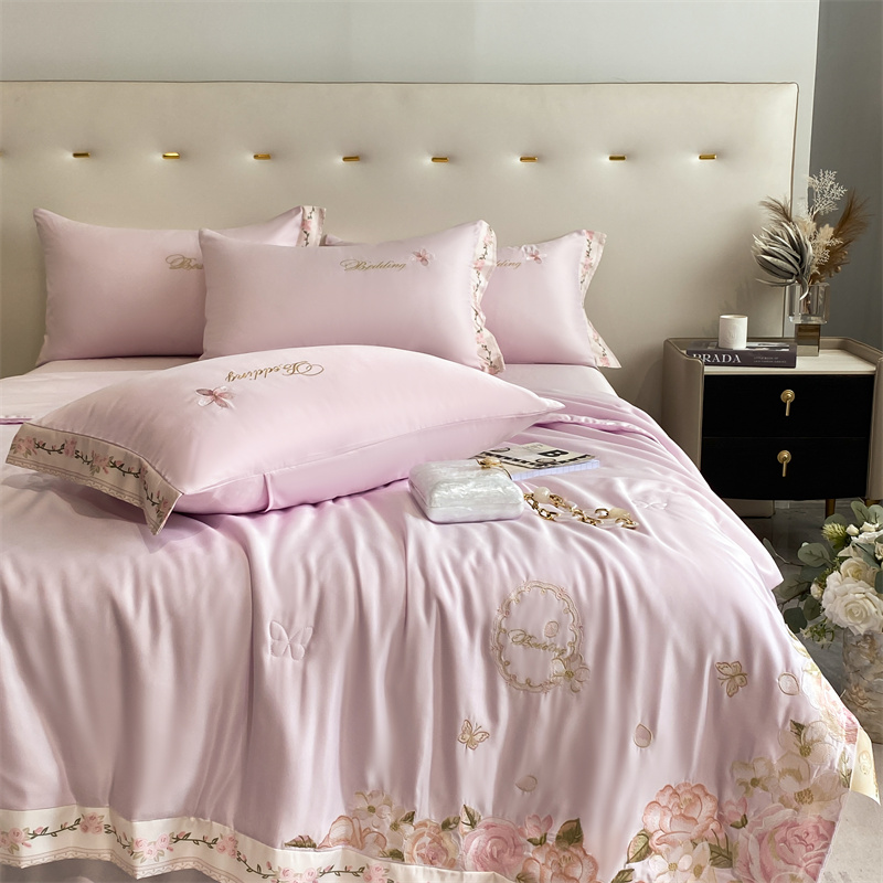 2024新款燕窝蛋白刺绣A类雪莲天丝数码边夏被四件套 浅紫
