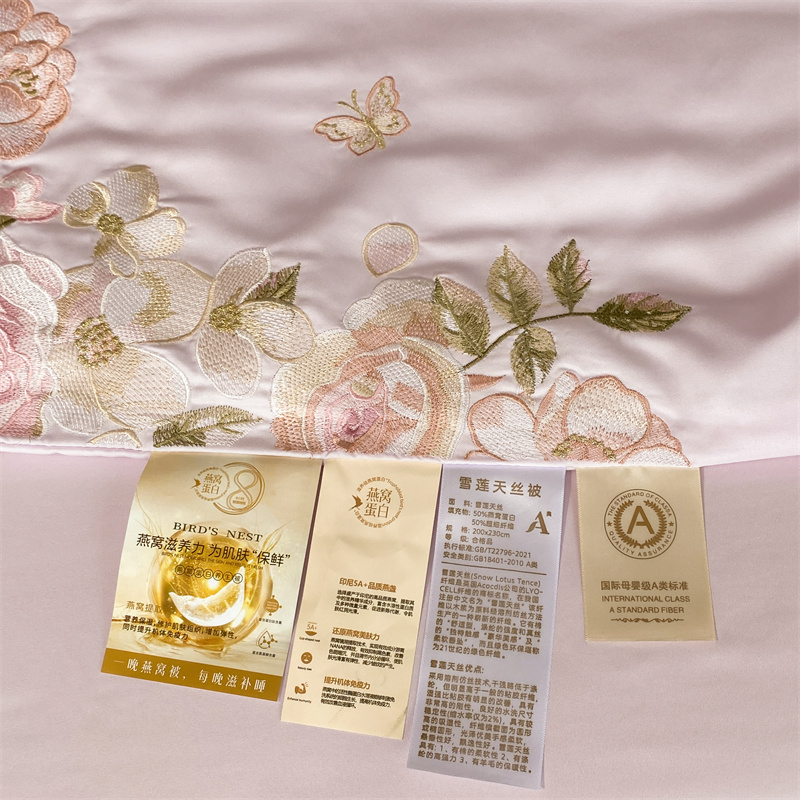 商品名称:2024新款燕窝蛋白刺绣A类雪莲天丝数码边夏被四件套 浅紫