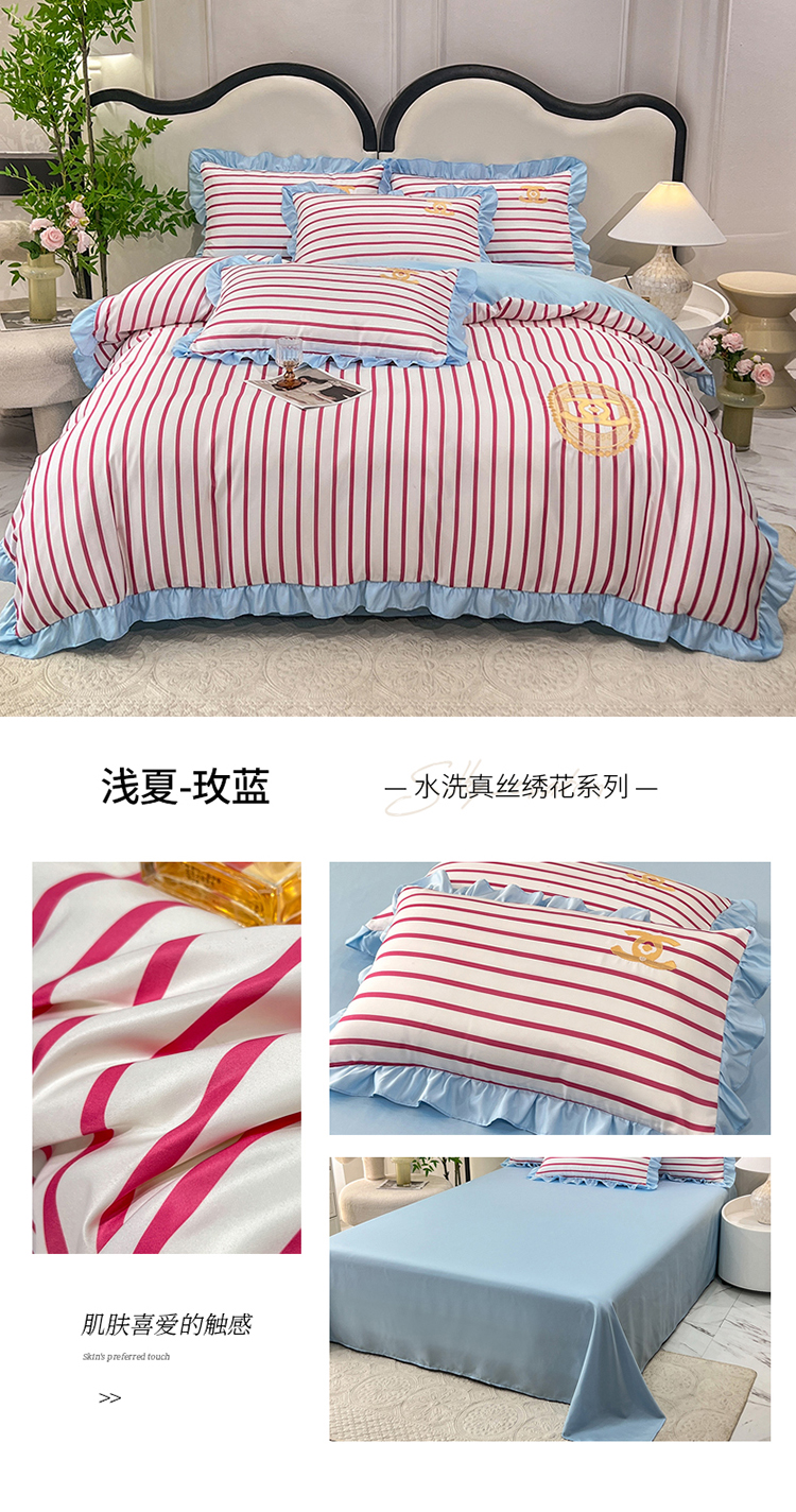 商品名称:新21 经年2025年 水洗真丝韩版四件套浅夏系列 浅夏-玫蓝