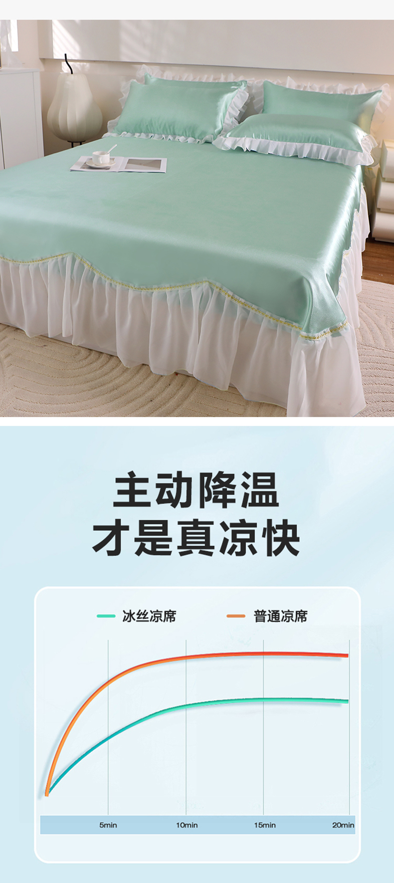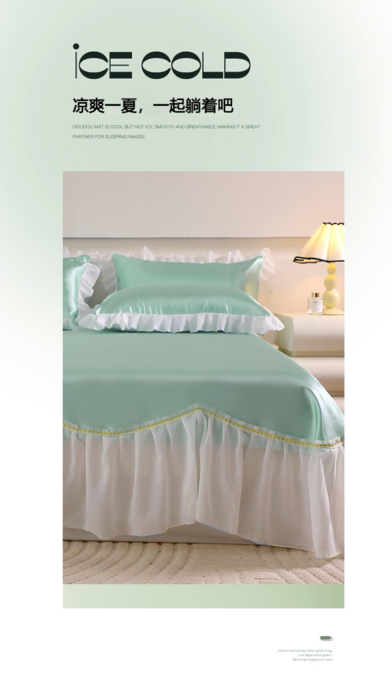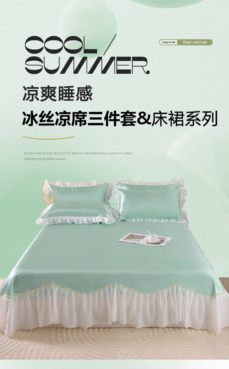 商品名称:雪夫人 2024新款冰丝凉席床裙三件套 海草绿
