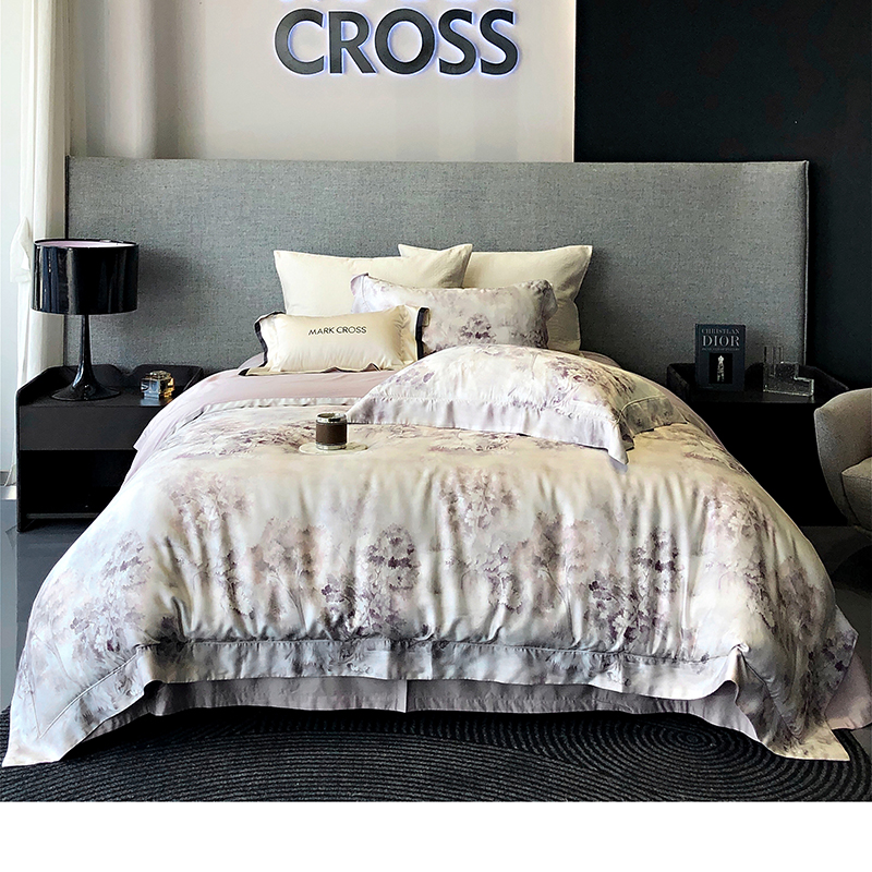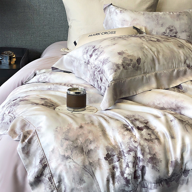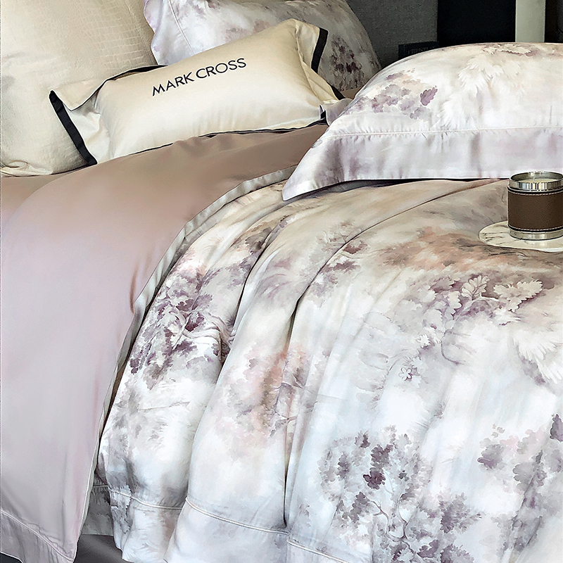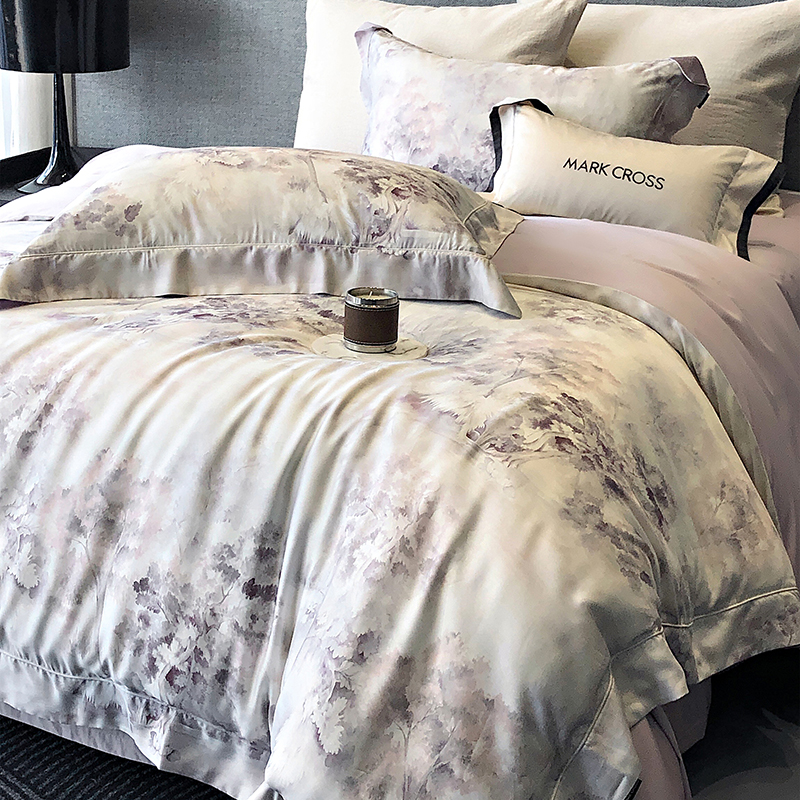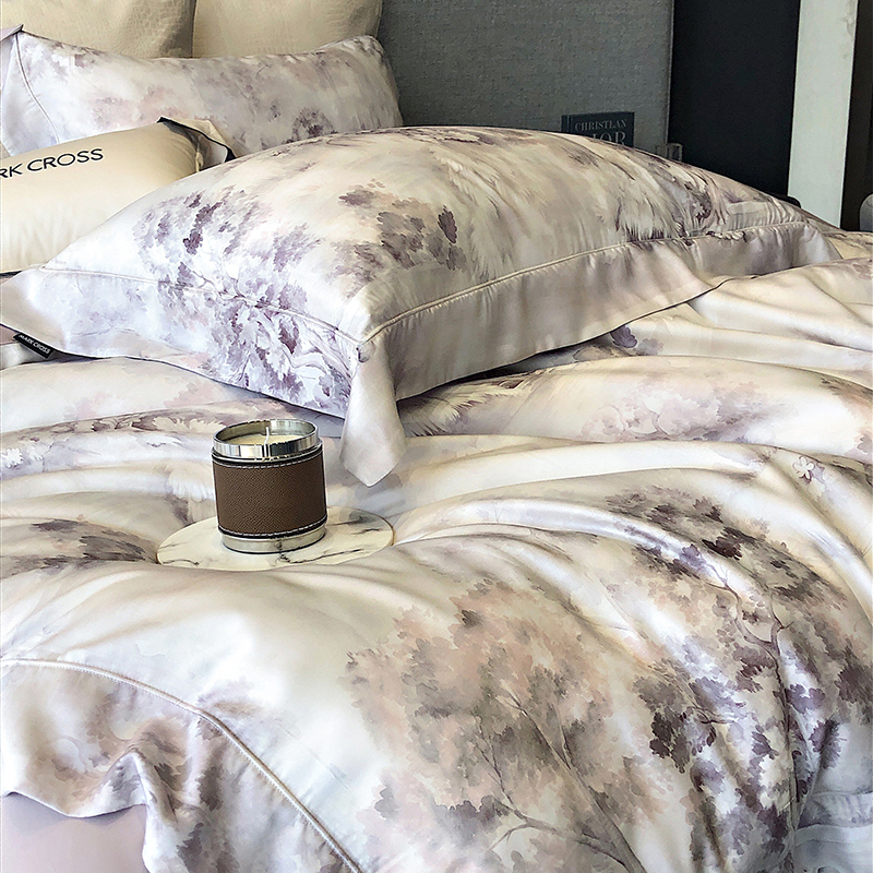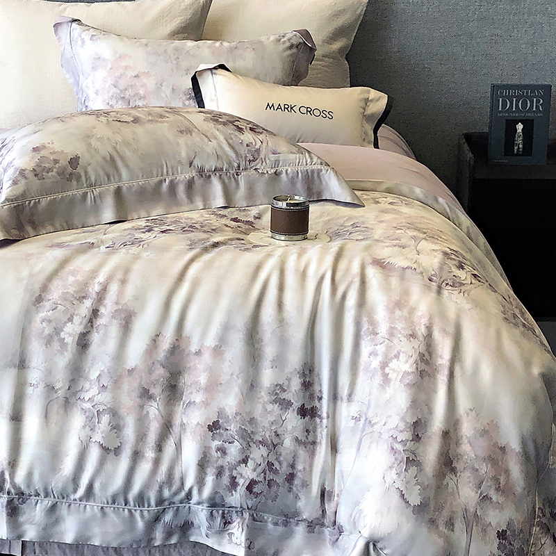 佳汐蓝 新款印花轻柔简雅奶丝四件套系列 贝卡里亚-梦幻紫