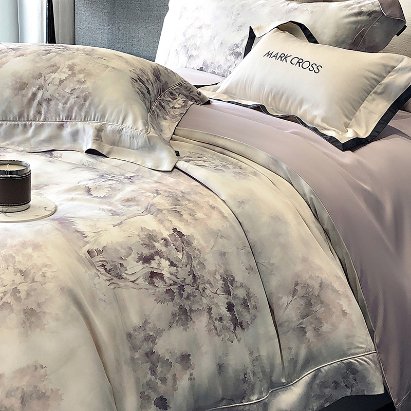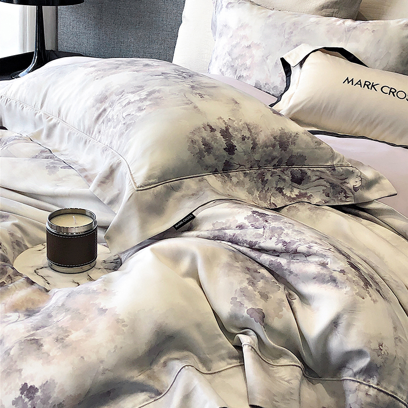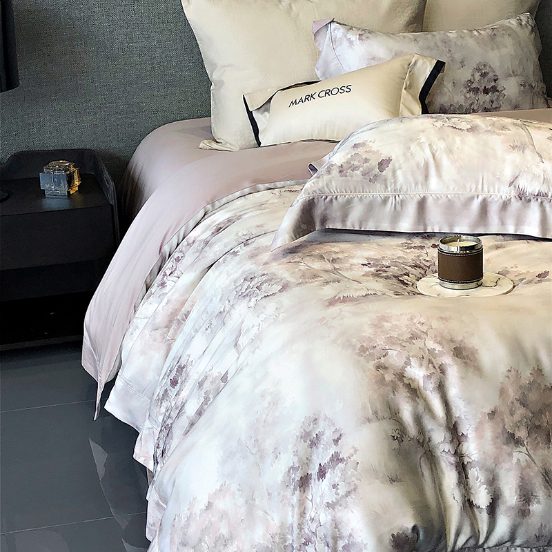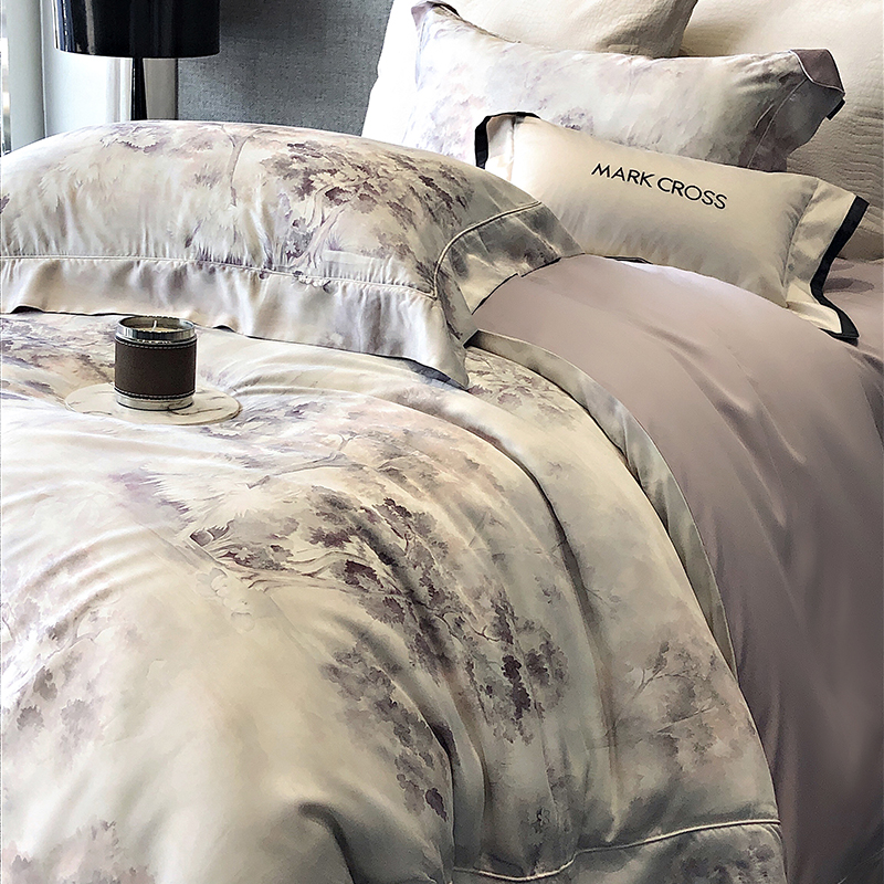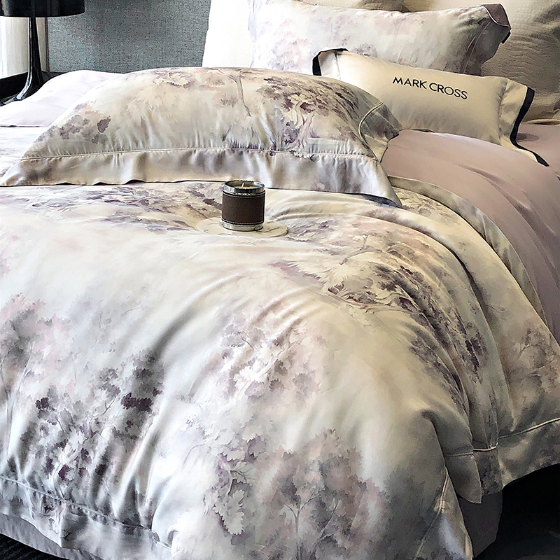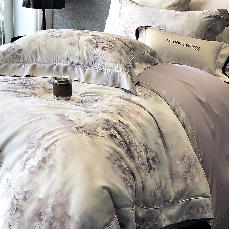 佳汐蓝 新款印花轻柔简雅奶丝四件套系列 贝卡里亚-梦幻紫