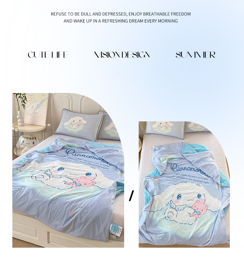 (总)蘭菲家纺 2025新款三丽鸥卡通印花夏被,8分甜,9分甜,兜风,聚餐大版,聚餐小版,明天见,摩卡,泡芙,恰恰.蓝,巧克力,去约会,甜睿