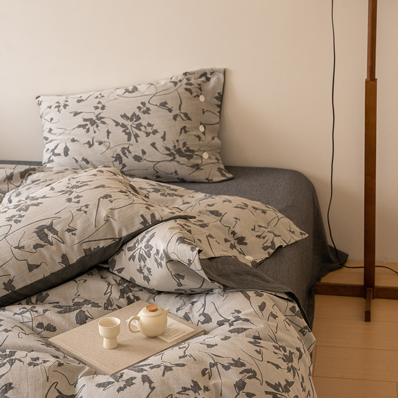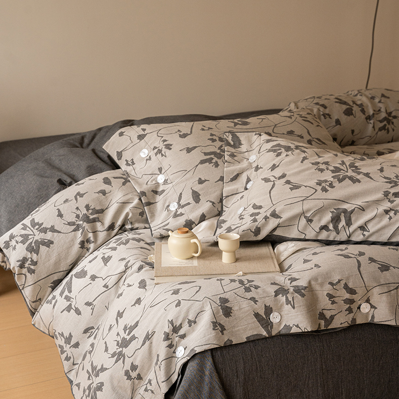 商品名称:华超针织 2024新款拾光剪影大提花四件套 1.8m床单款四件套 拾光剪影 深灰