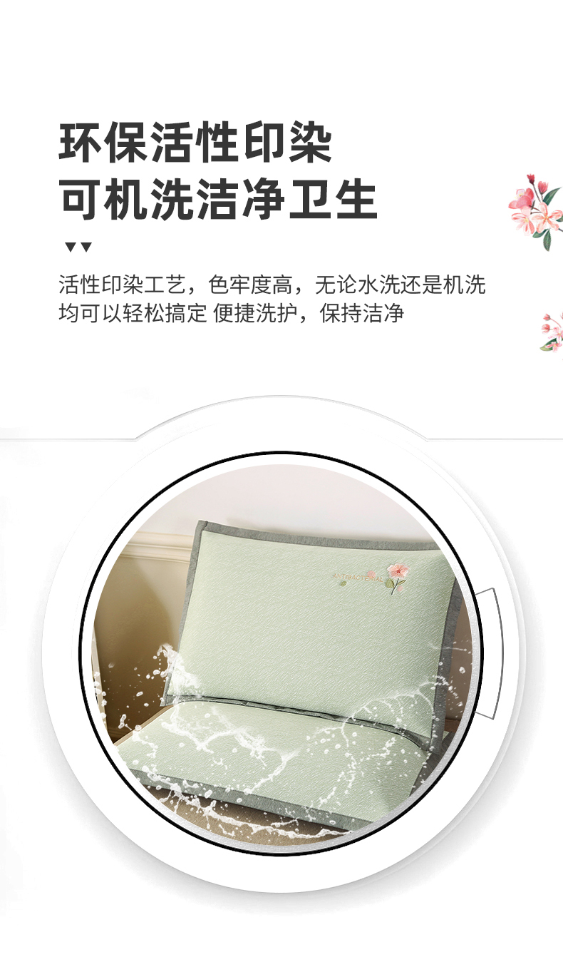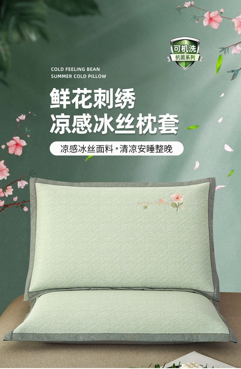 商品名称:小牛席业 鲜花刺绣凉感冰丝席枕套 鲜花凉感冰丝枕套-绿色