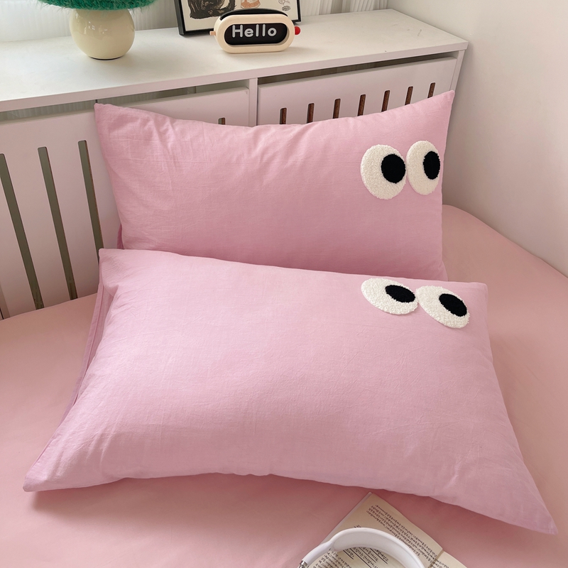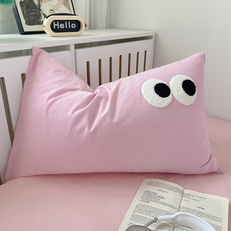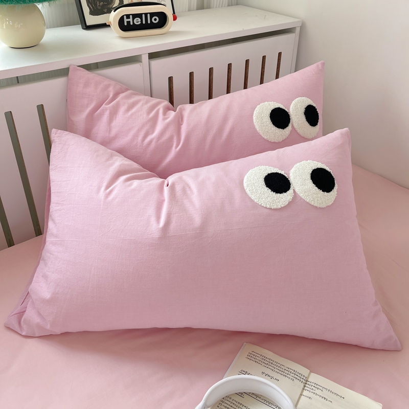 丽涵家纺 2024新款全棉色织水洗棉单品枕套-毛巾绣大眼系列 48*74cm枕套/只 ins混搭2-樱花粉