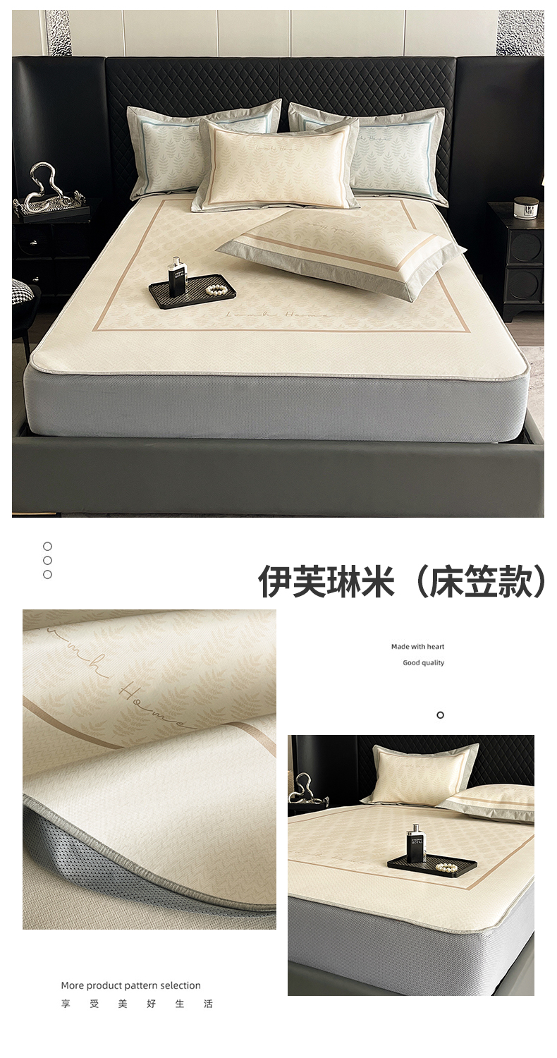 商品名称:三味舒屋 2025新款凉感抗菌防螨印花冰丝养生席手绘系列床笠款【简欧】 伊芙琳米