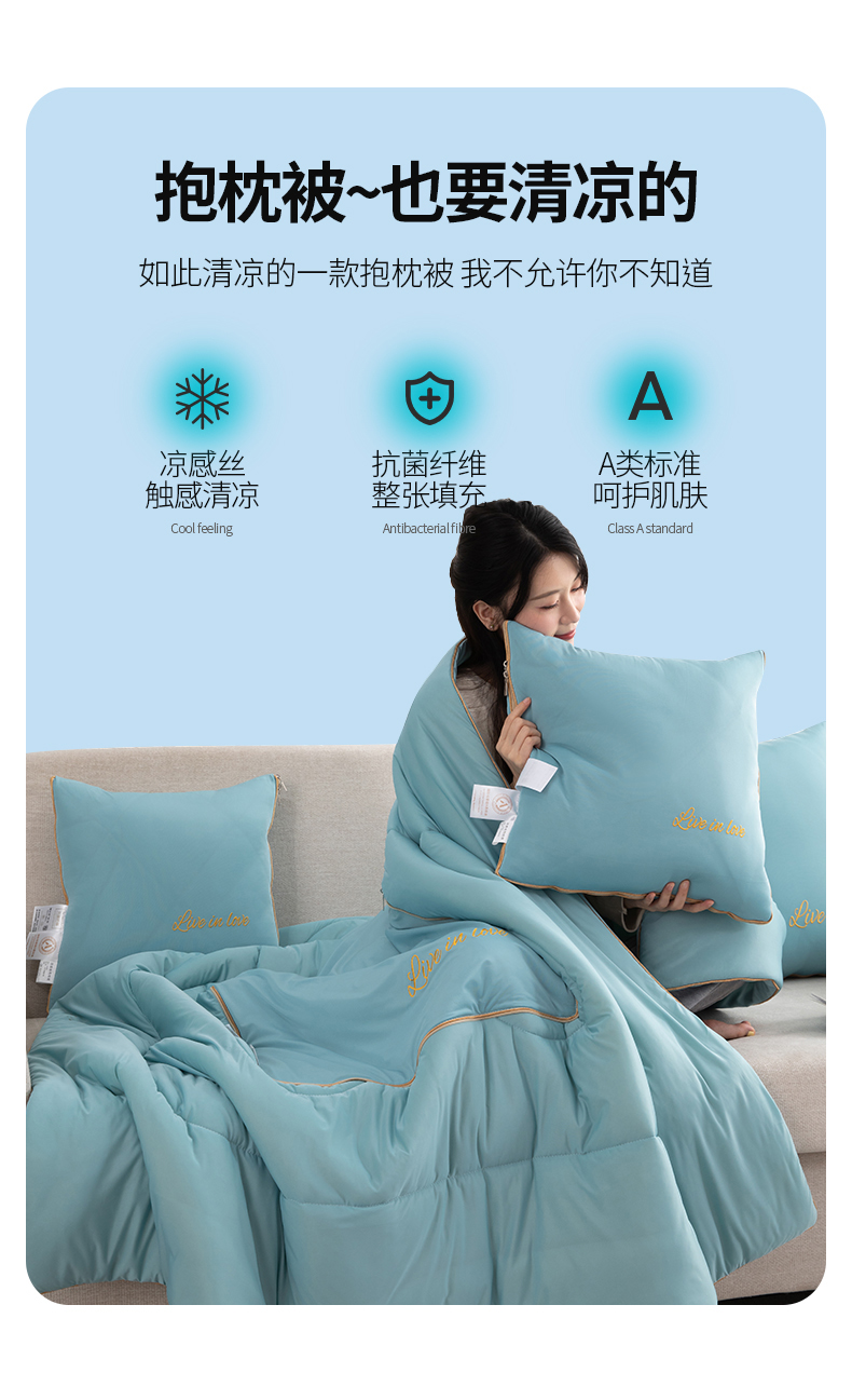 商品名称:照世 2024新款凉感丝轻奢抱枕被 云水绿