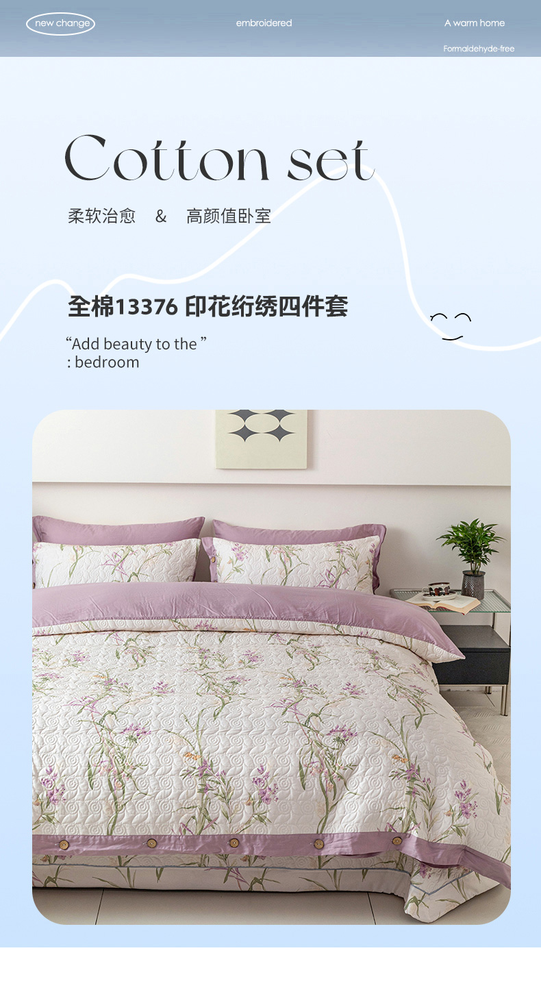 当前位置: 91家纺网 > 商品网购 > 床品套件 > 四件套 > 其它四件套 > 优乐家纺 2025新款纯棉印花夹棉系列四件套-纽扣款 迷雾