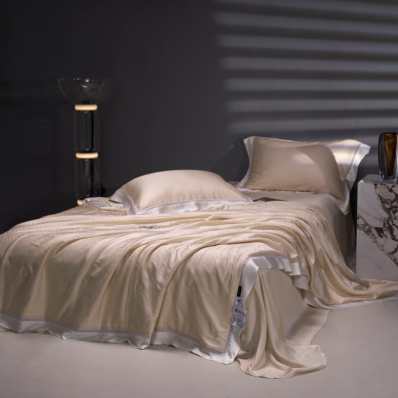 (总)朴罗 ( 原岚图) 2024新款金蚕乳丝大宽边拼角单夏被,淡紫,粉,灰棕,金,蓝,绿