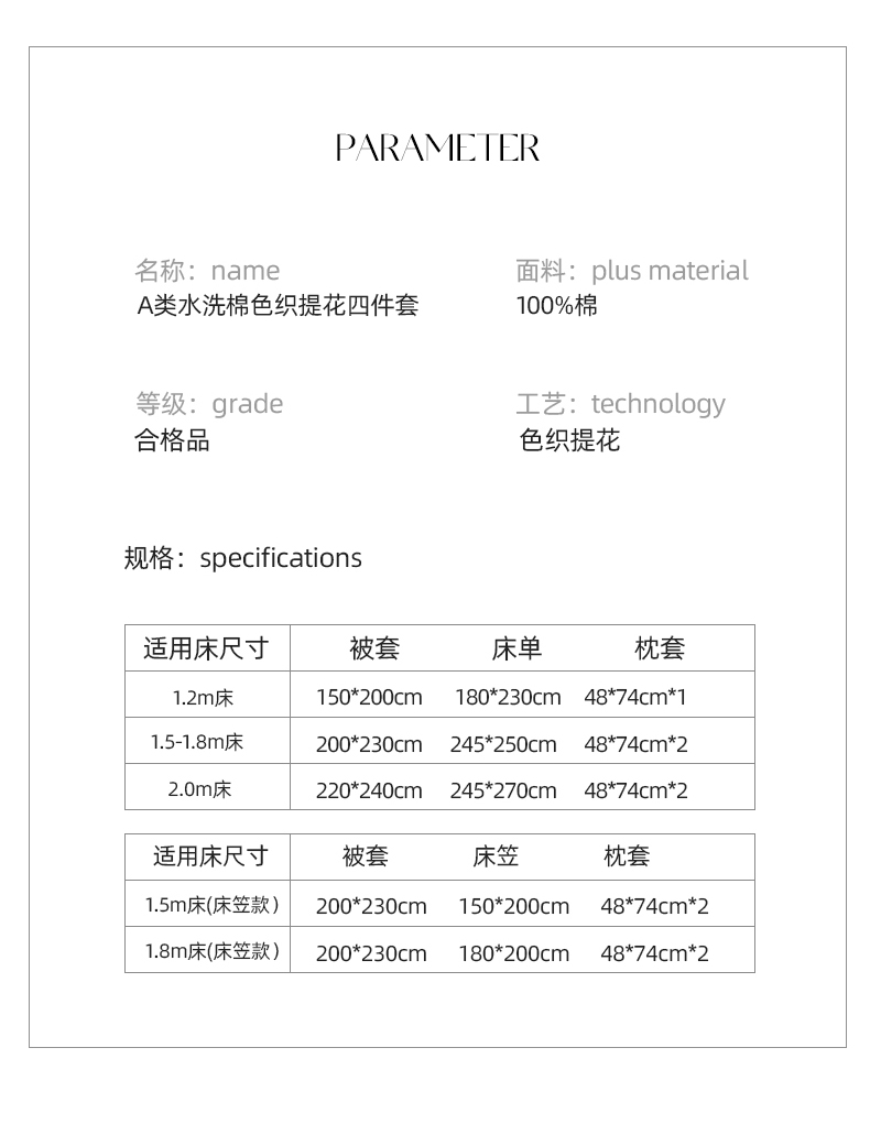 商品名称:(总)千朵森 2024新款水洗棉色织提花四件套 风格一