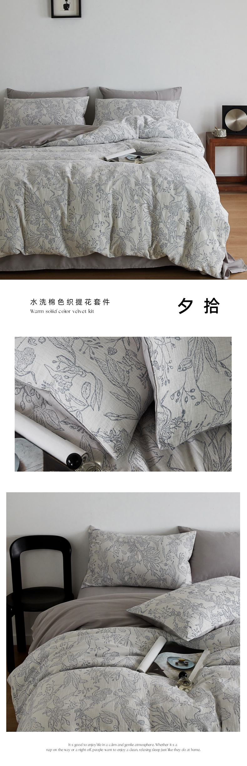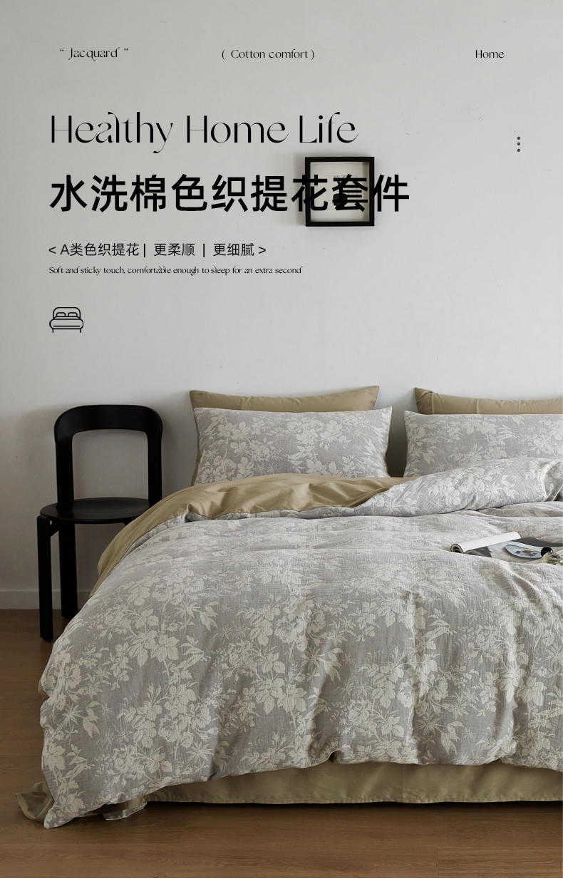 (总)千朵森 2024新款水洗棉色织提花四件套 风格一
