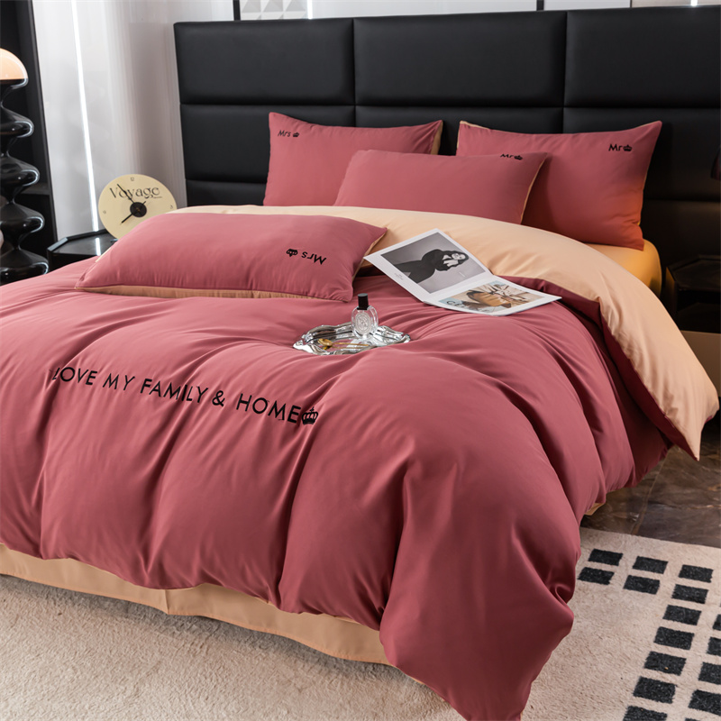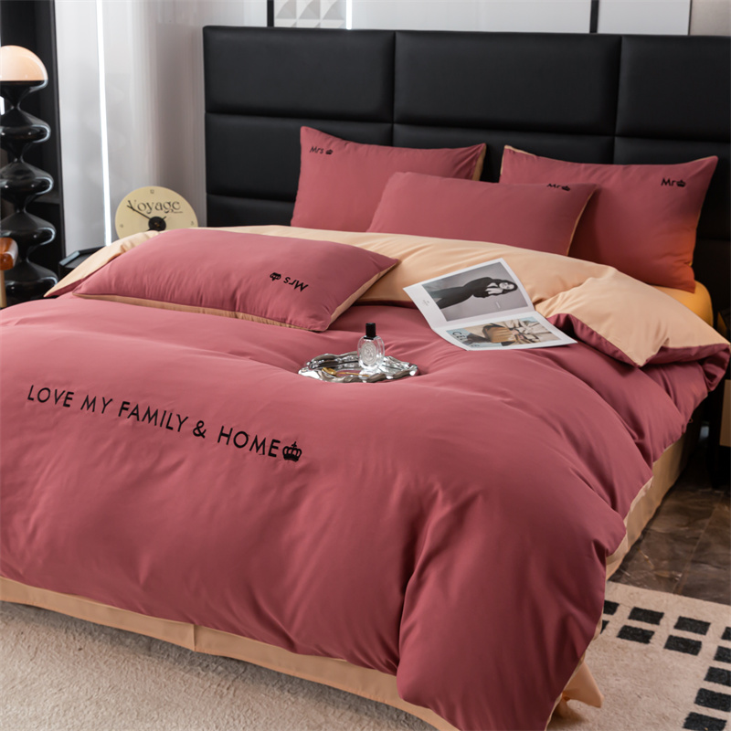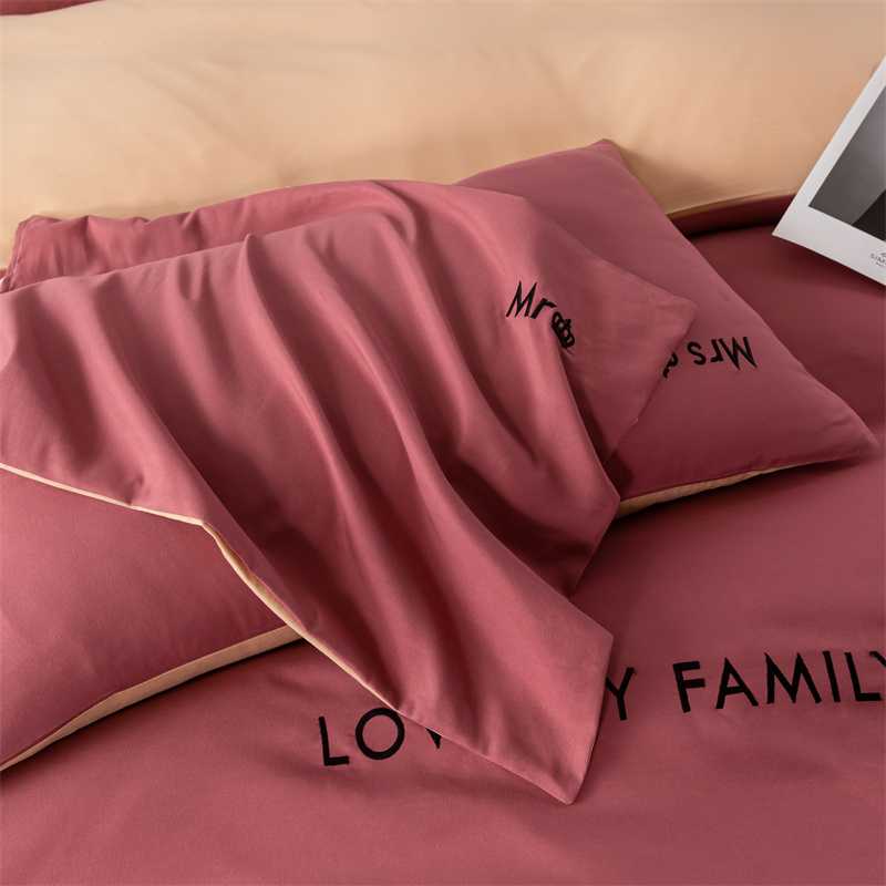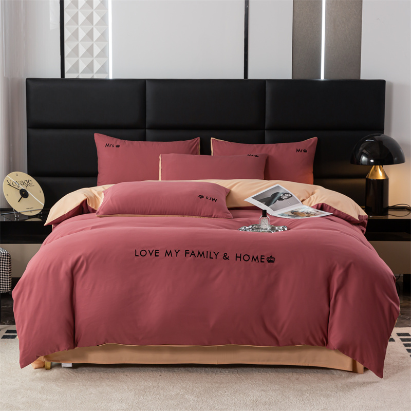 梦莱家纺 2024新款磨毛刺绣四件套 玫红