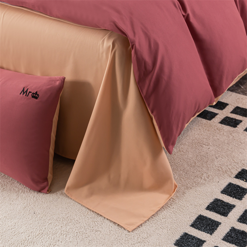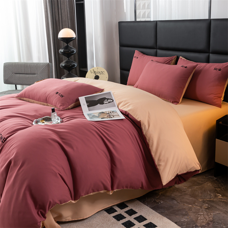 (总)梦莱家纺 2025新款亲肤磨毛纯色拼色轻奢系列四件套,橄榄绿,果绿,卡其,米黄,深红,深灰,深蓝,天蓝,粉+深灰,卡其+米黄,青蓝+天蓝,深蓝+深灰