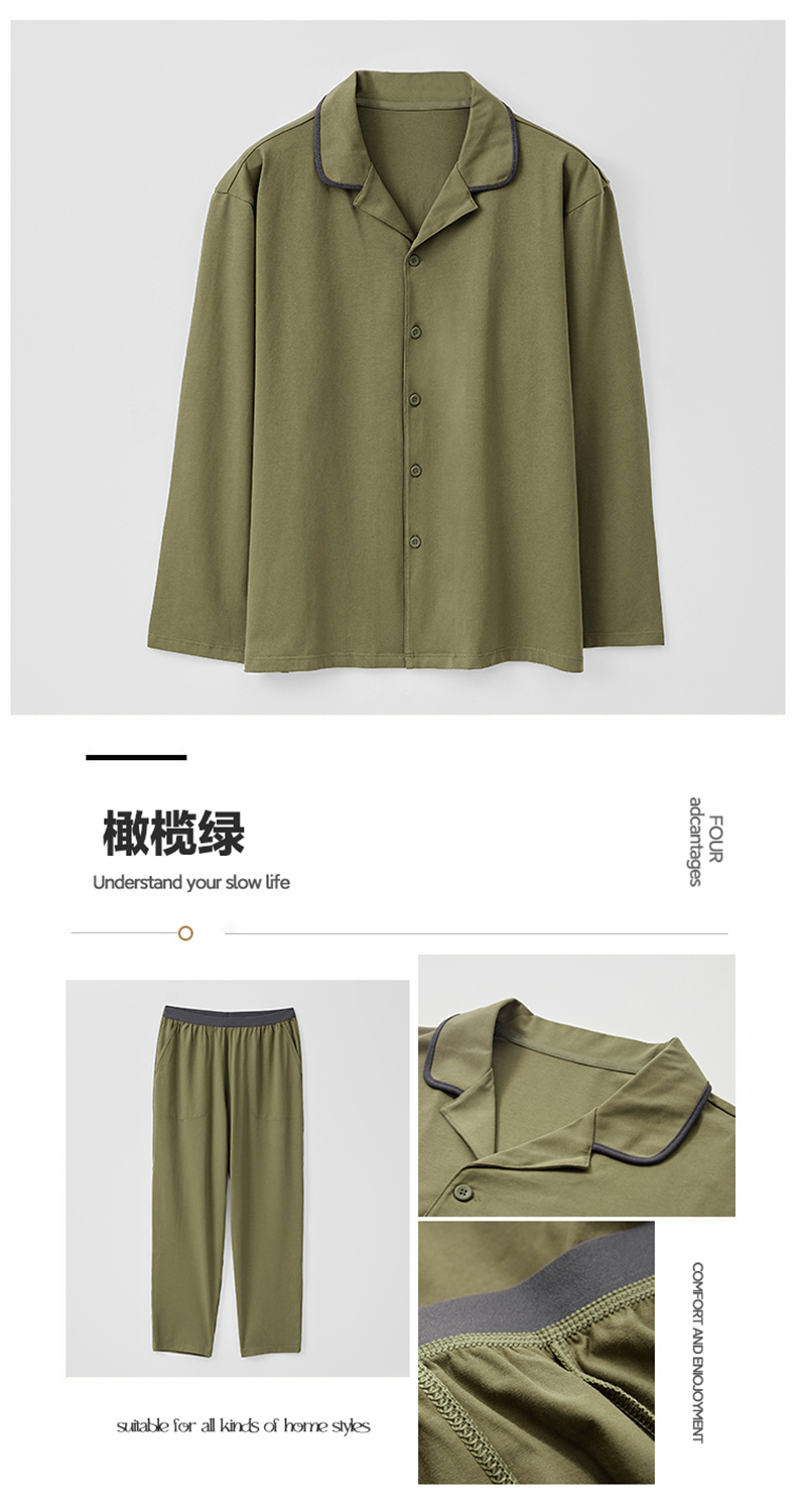 EH 2024新款全棉男女情侣款家居服-男女款翻领 男款橄榄绿