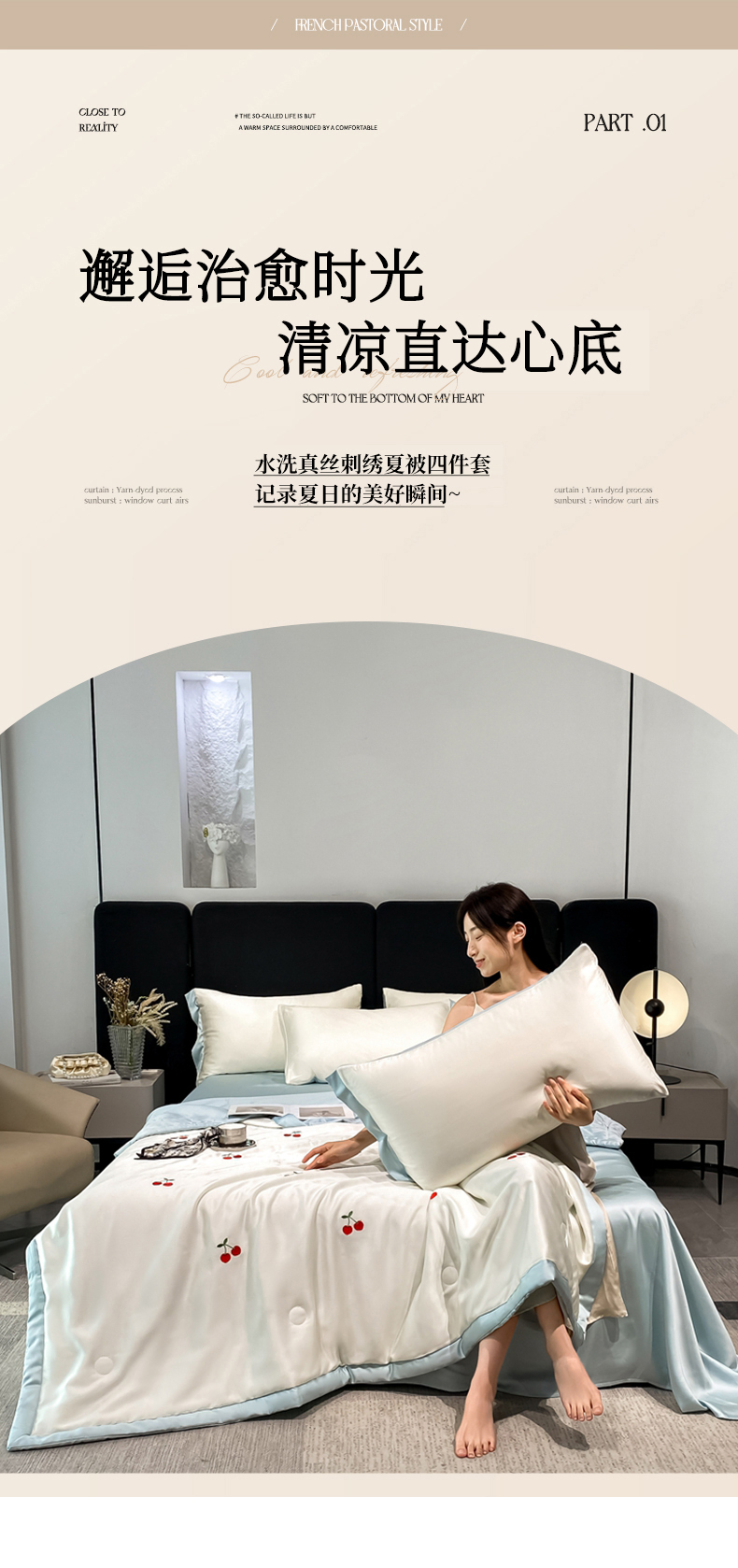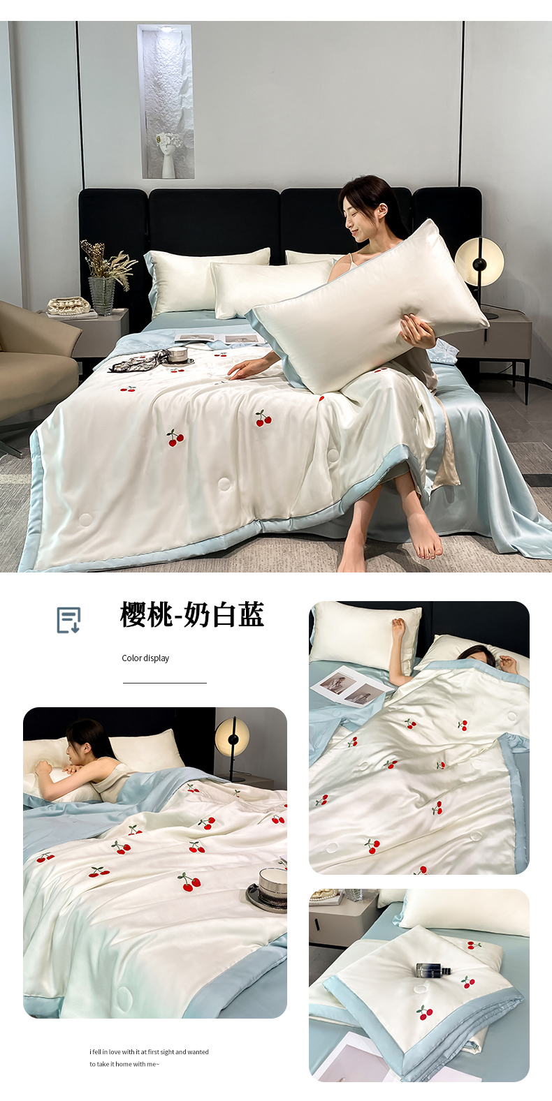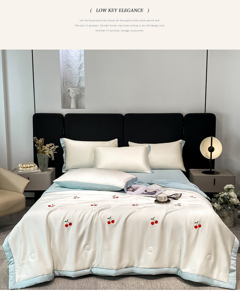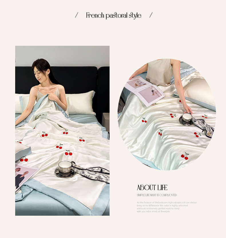 当前位置: 91家纺网 > 商品网购 > 床品套件 > 四件套 > 夏被四件套 > 利欧 2025新款刺绣水洗真丝夏被四件套 樱桃-奶白蓝