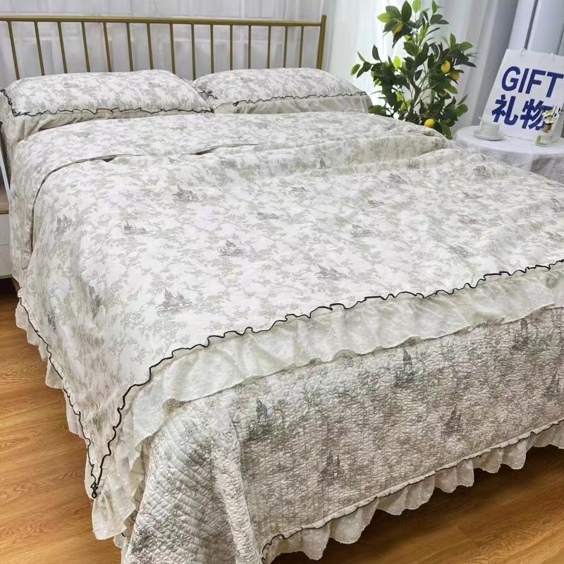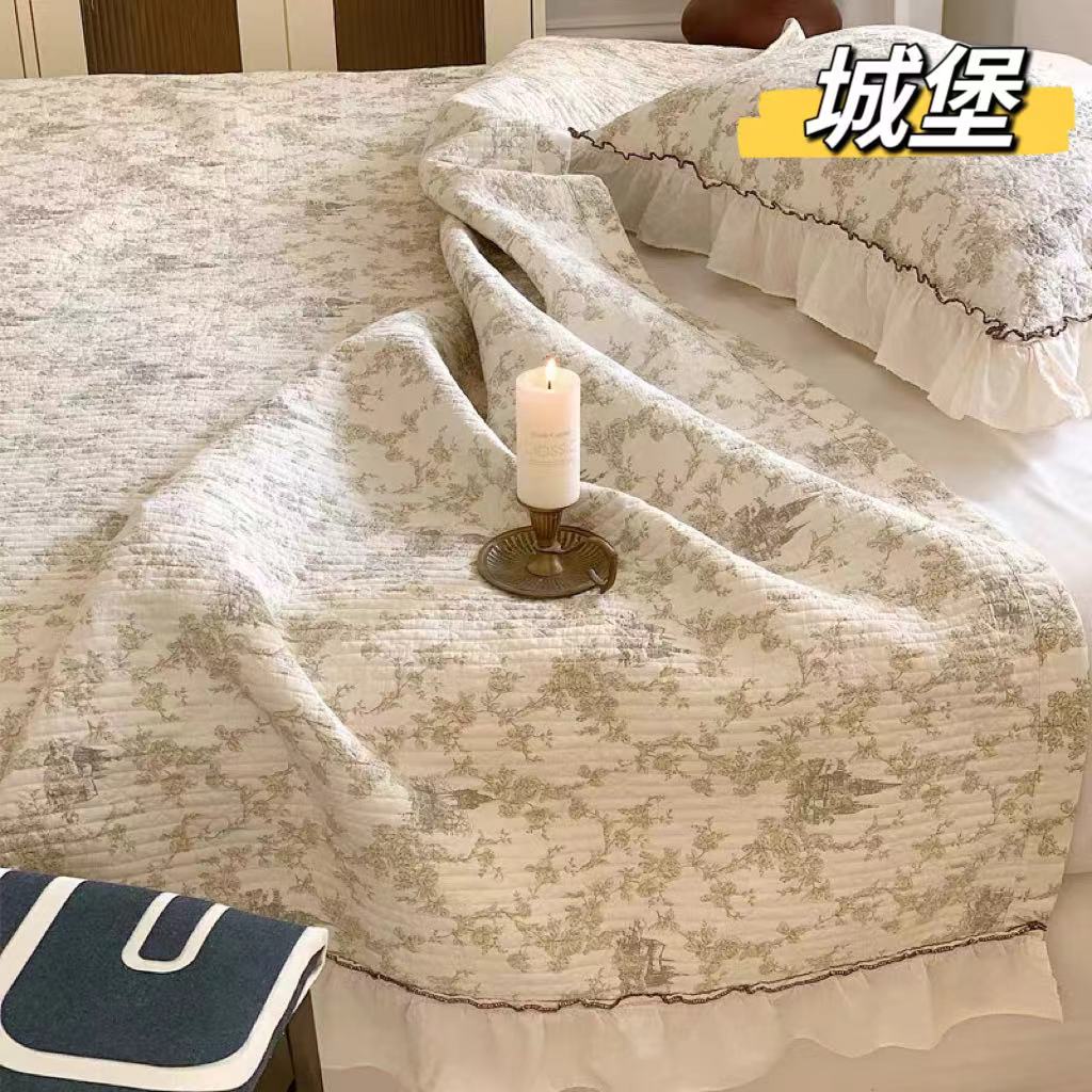 (总)纯棉床盖三件套260×240法式全棉床裙花边 纯棉夹棉床盖