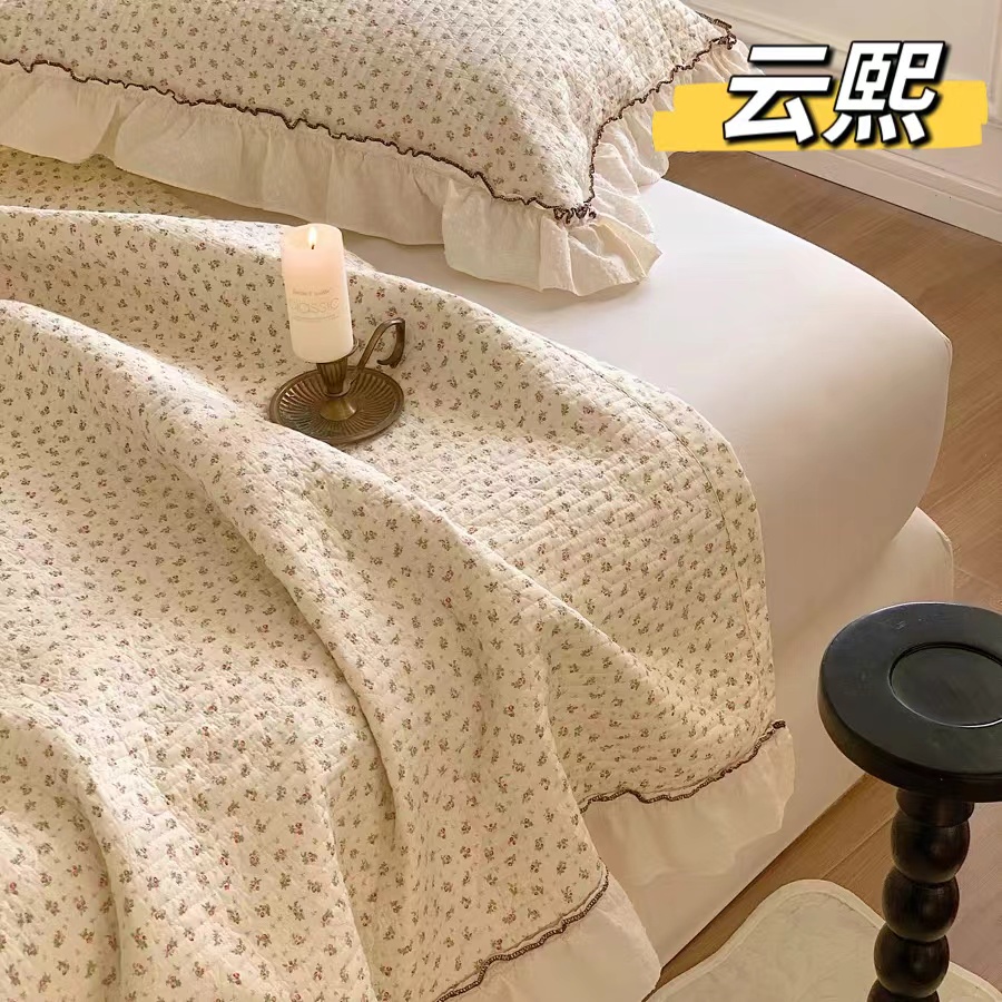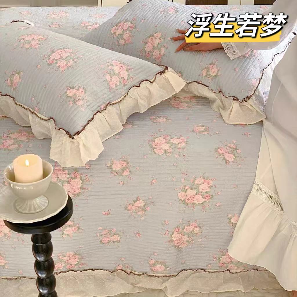 (总)赫本纯棉床盖三件套 韩国碎花纯棉床盖三件套全棉夹棉床单花边可机洗,泡芙小花,瑶香,暖阳春绿,私物,云香兰,花锦,木槿紫,莉莉安 ,落棠,蒂芙尼 ,小苍兰,吉吉兔 ,粉花蔓,慕斯兰 ,秋茗,梨花落