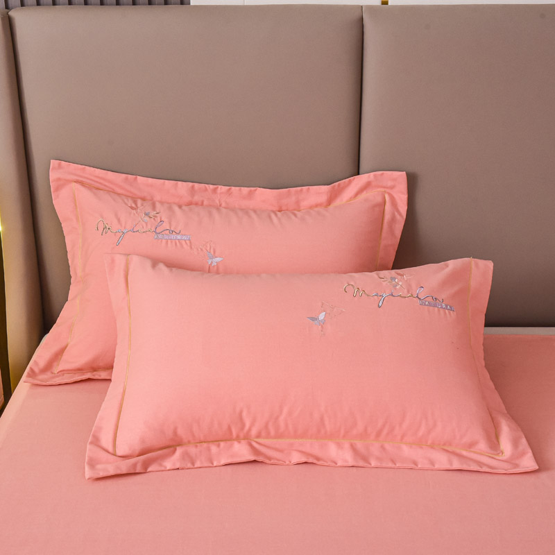 艾迪尚家纺 2025新款纯色生态磨毛绣花单枕套 蝶恋花-暖玉