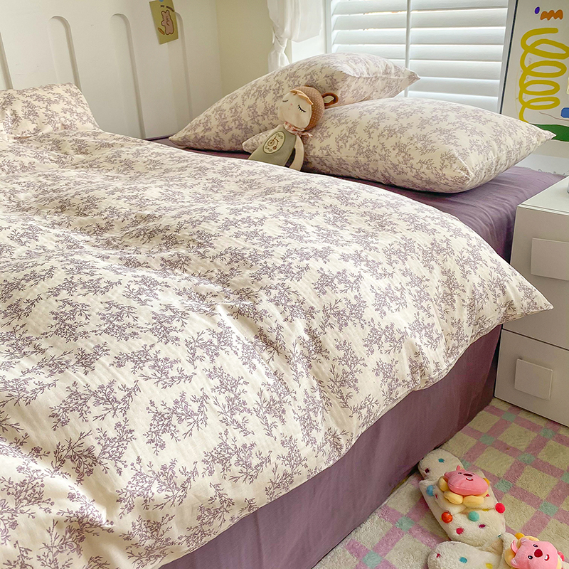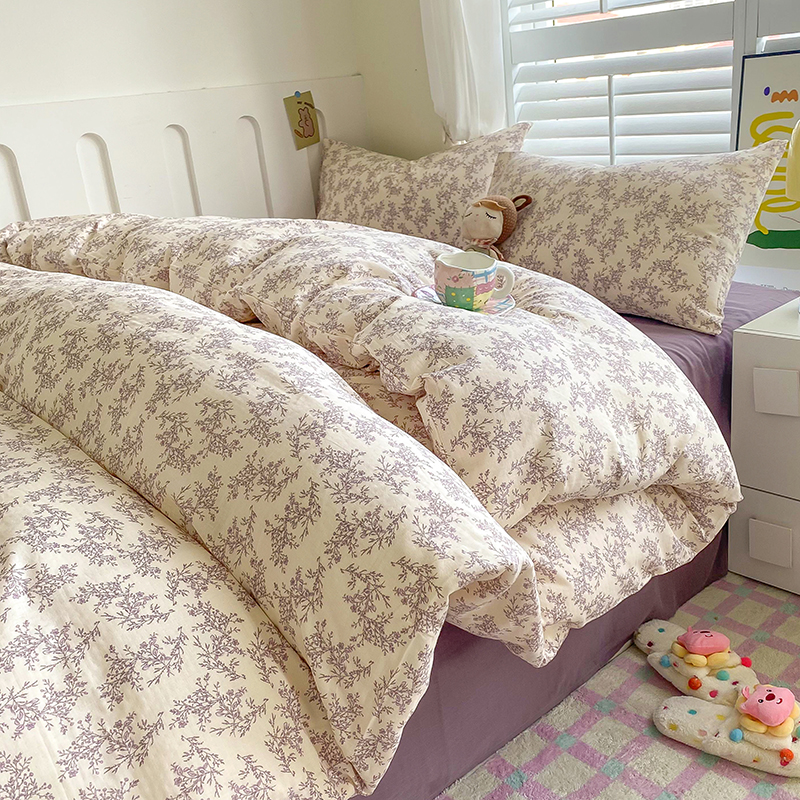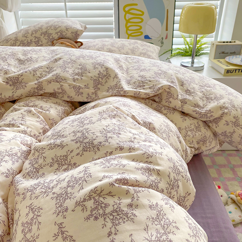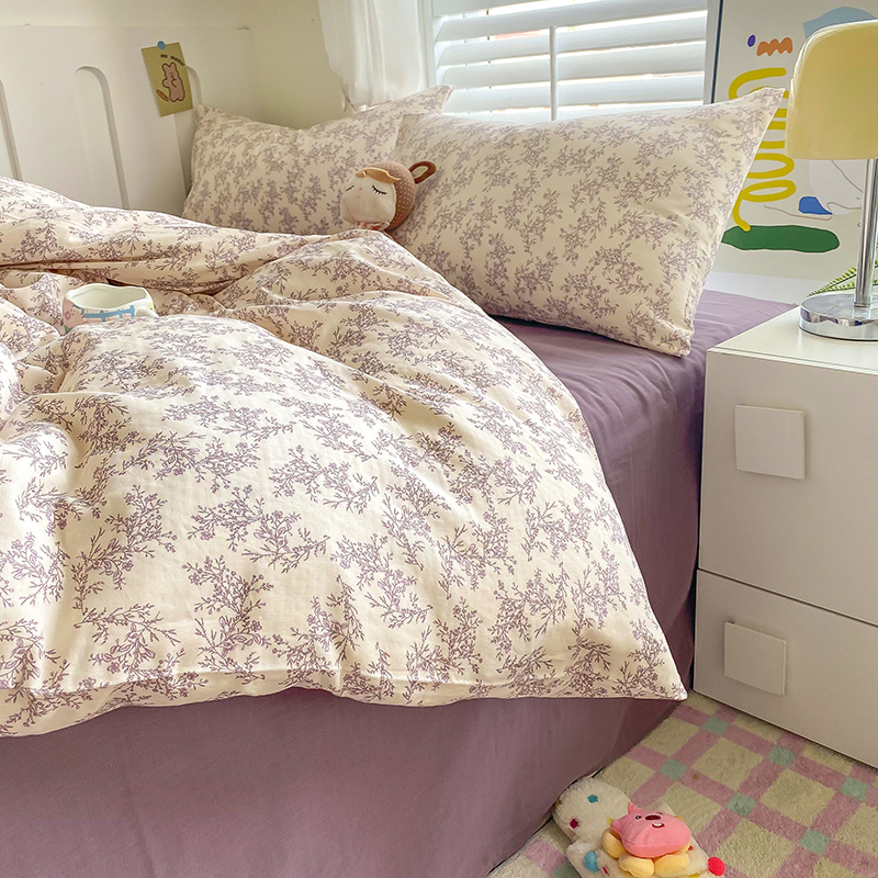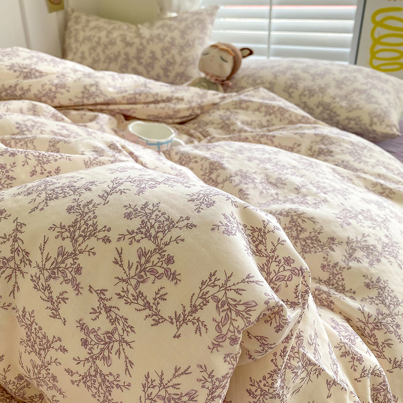 商品名称:爵仕家纺 2025小清新风格双层纱纯棉四件套 夏紫