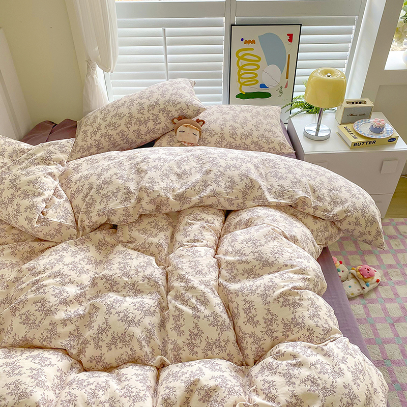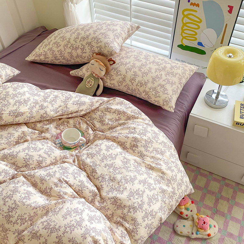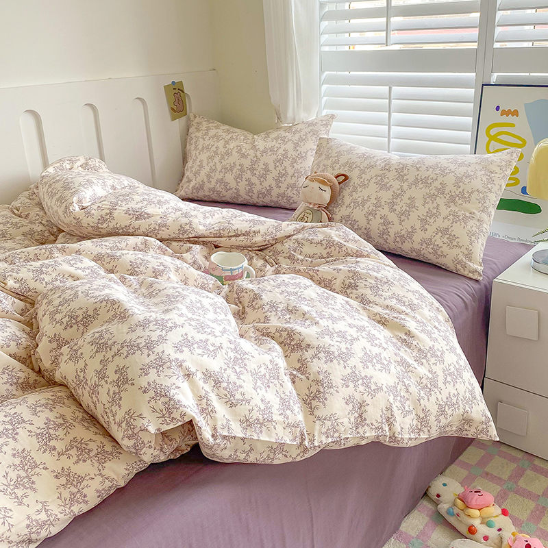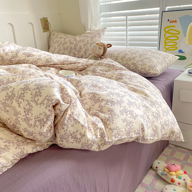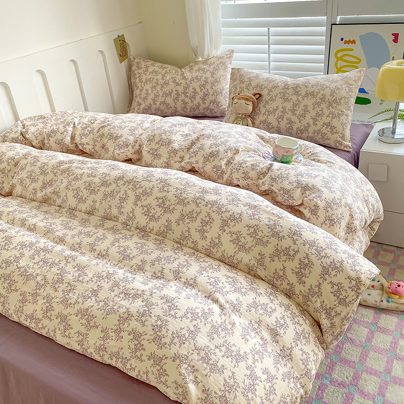 商品名称:爵仕家纺 2025小清新风格双层纱纯棉四件套 夏紫