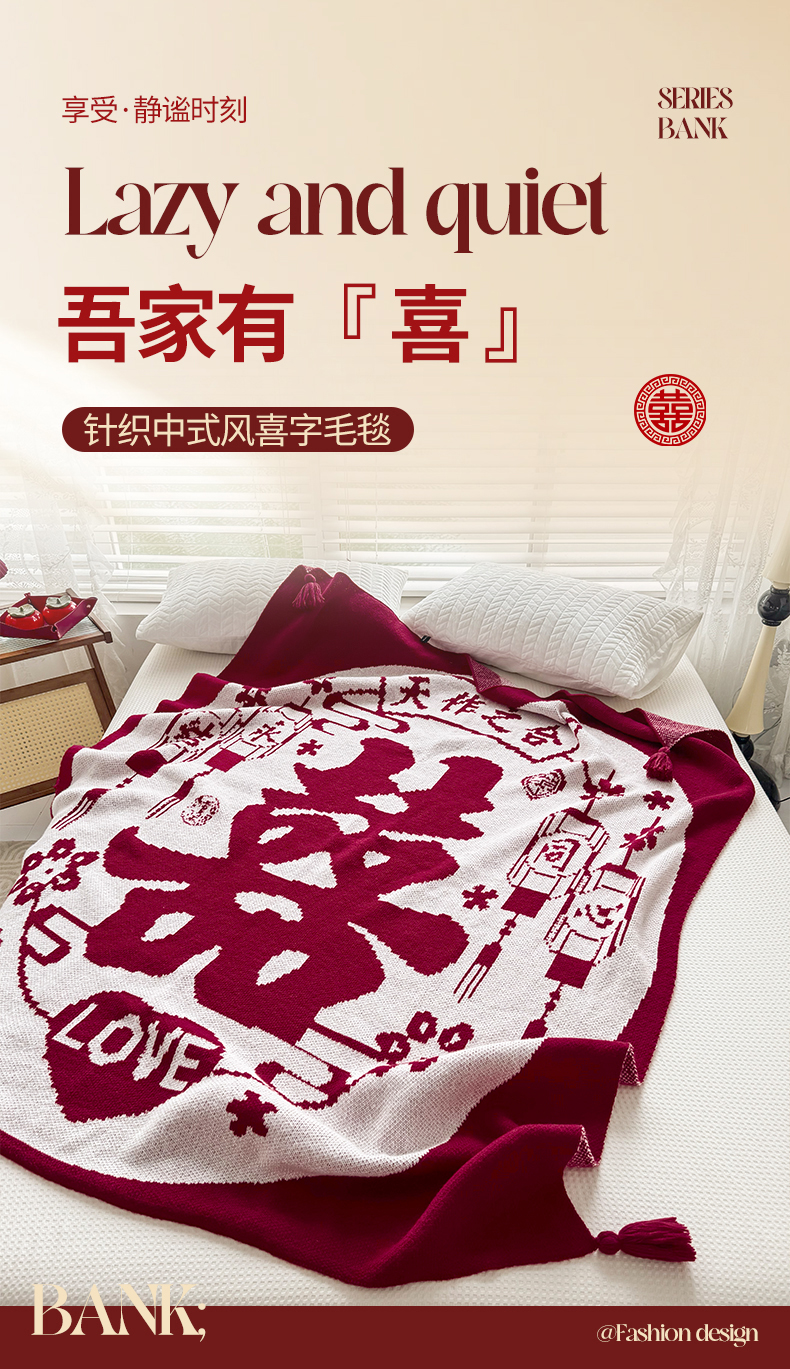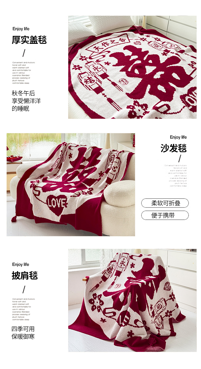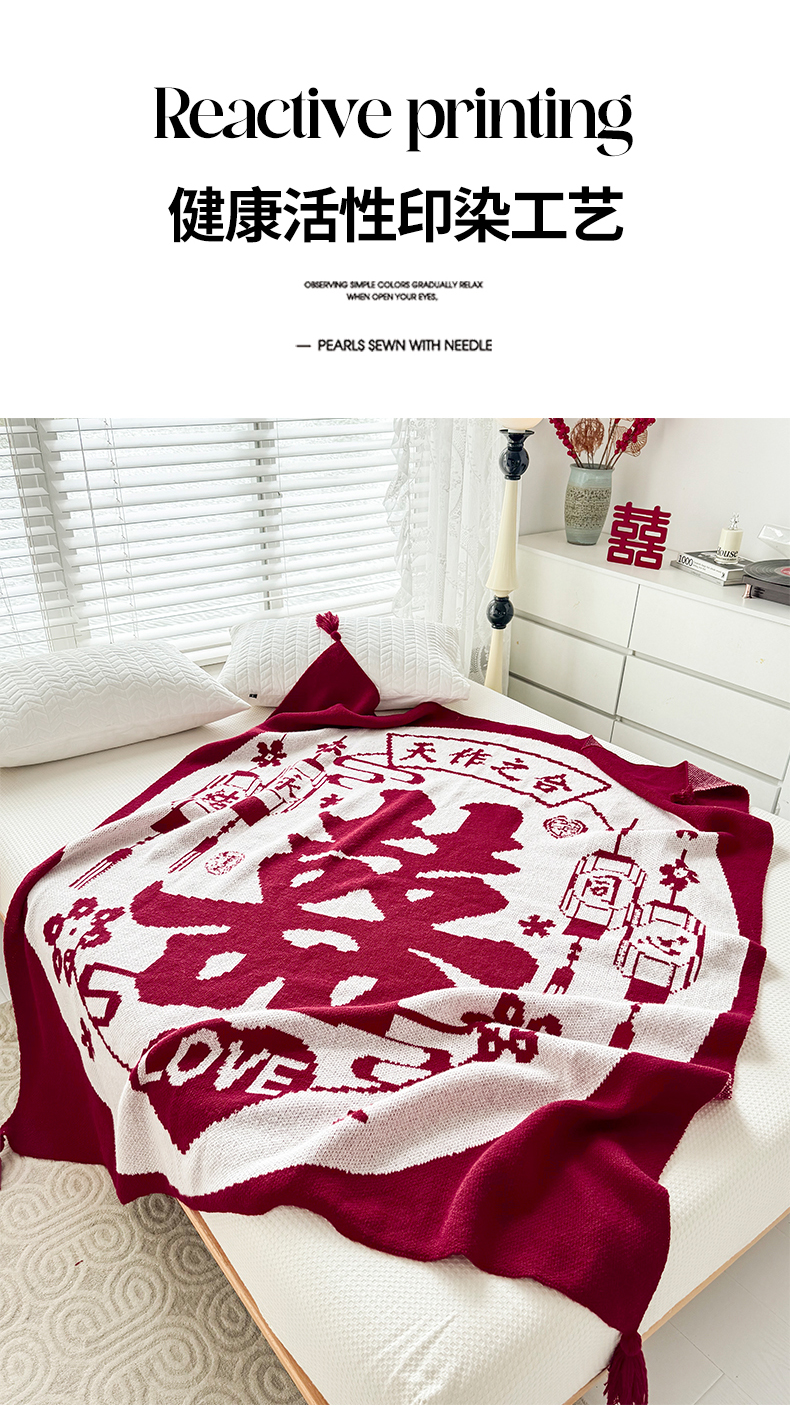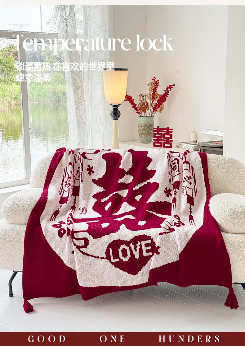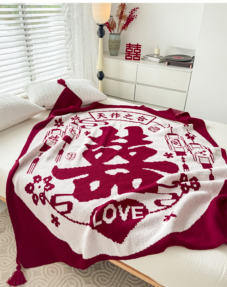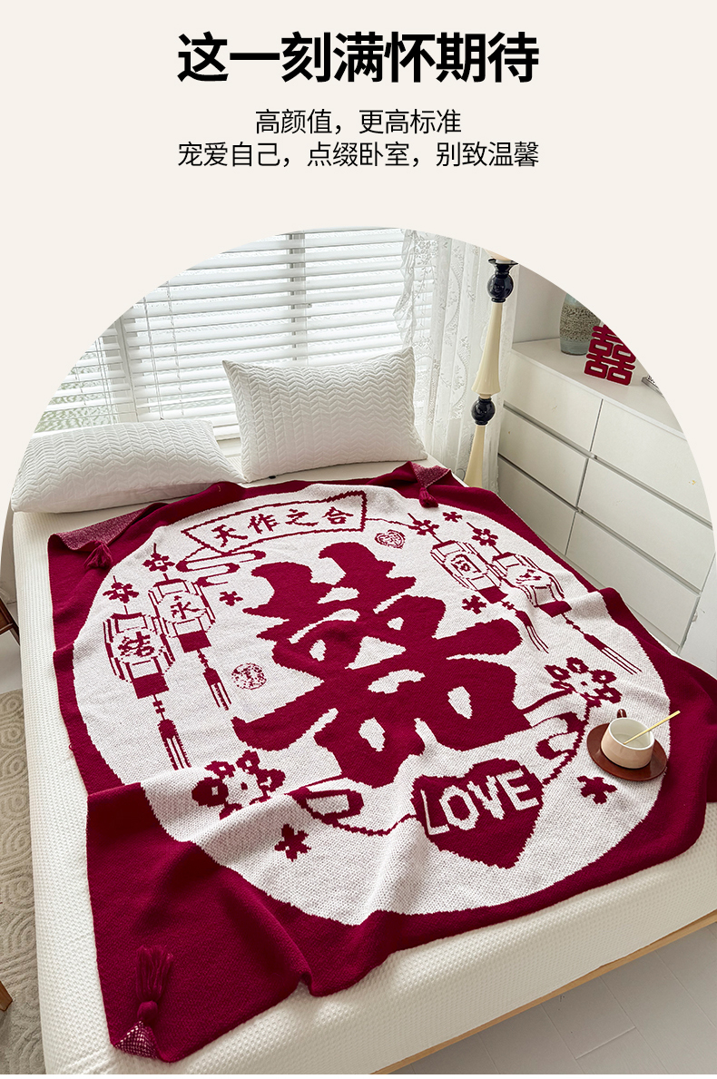 当前位置: 91家纺网 > 商品网购 > 毛毯休闲毯绒毯 > 针织毯 > 苏艺针织盖毯 2024新款中式风高端婚礼喜字毛毯 针织喜-天作之合喜字盖毯