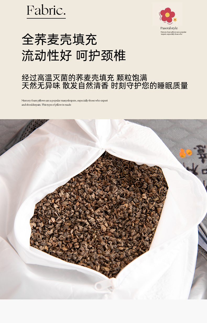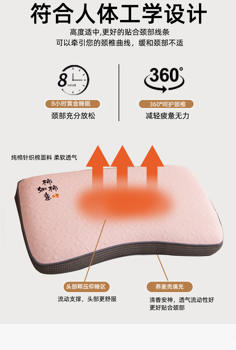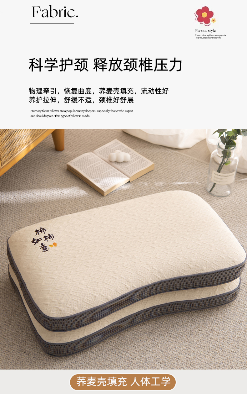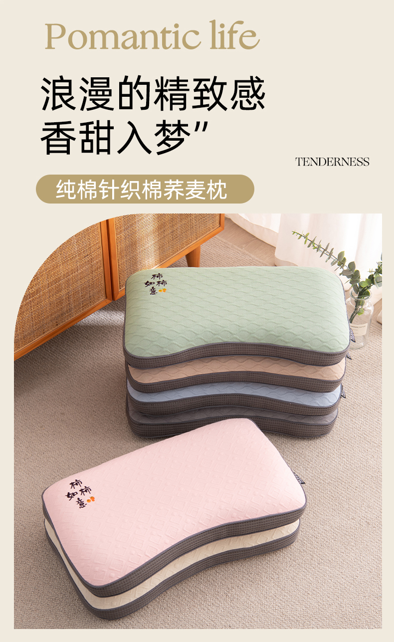 商品名称:(总)织布人 2024新款荞麦枕全棉针织碟型柿柿如意全荞麦壳枕头护颈椎硬枕芯