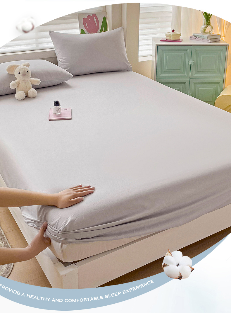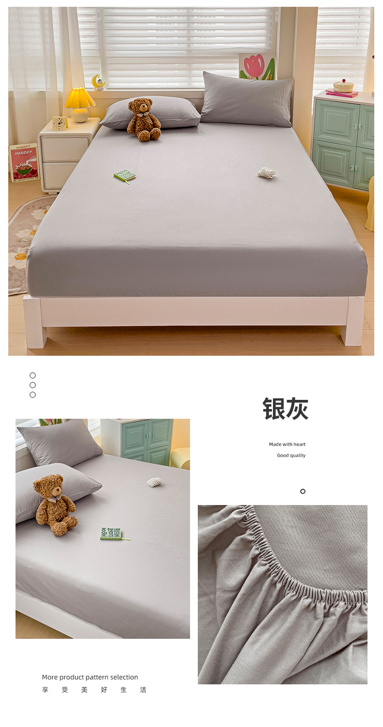 • 91家纺网 家纺一手货源 找家纺 2024新款纯色全棉简约床笠 气质灰