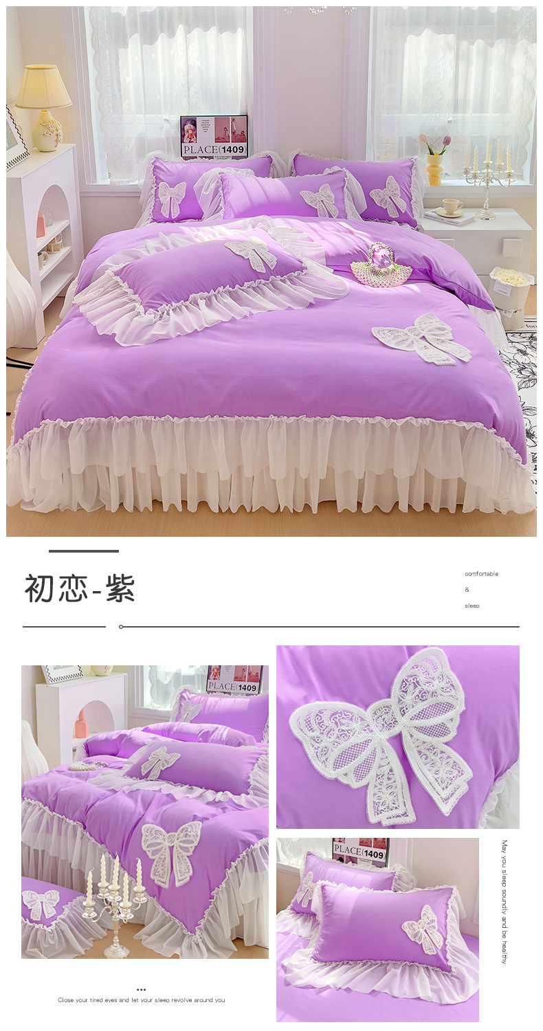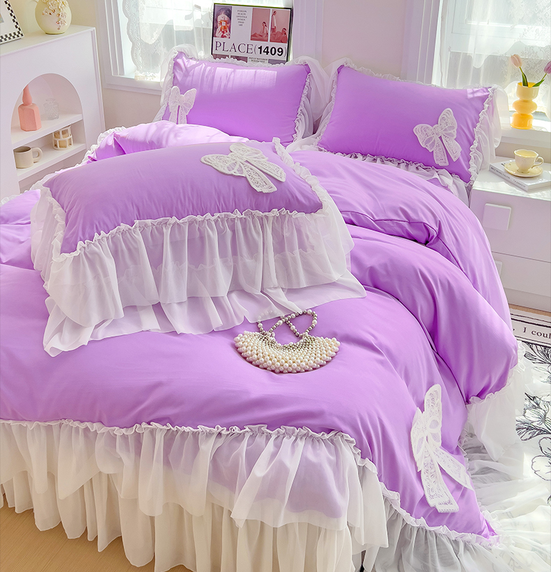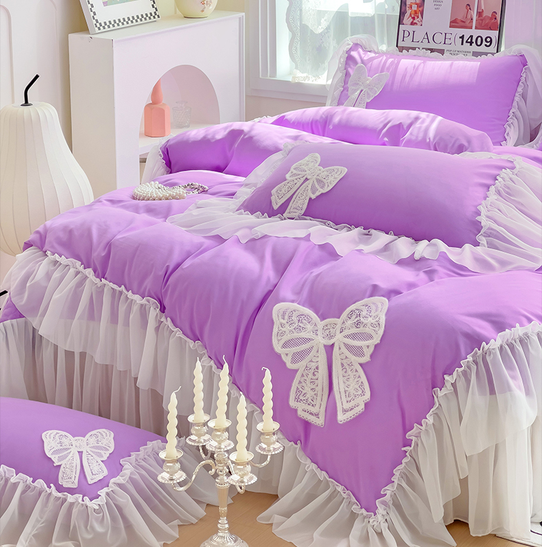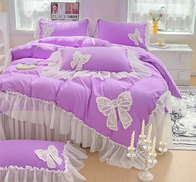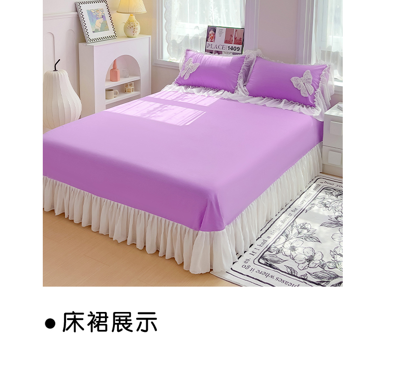 当前位置: 91家纺网 > 商品网购 > 床品套件 > 四件套 > 其它四件套 > 言熙居家纺 2024新款韩版贴布绣雪纺花边床盖款四件套-初恋 初恋-紫