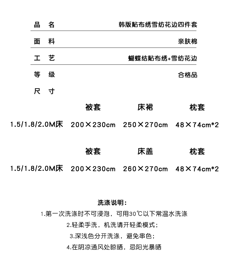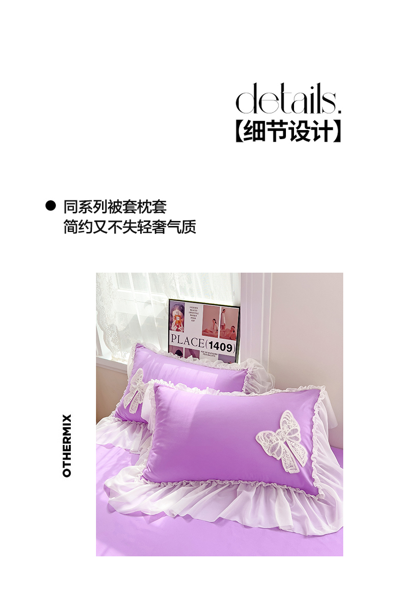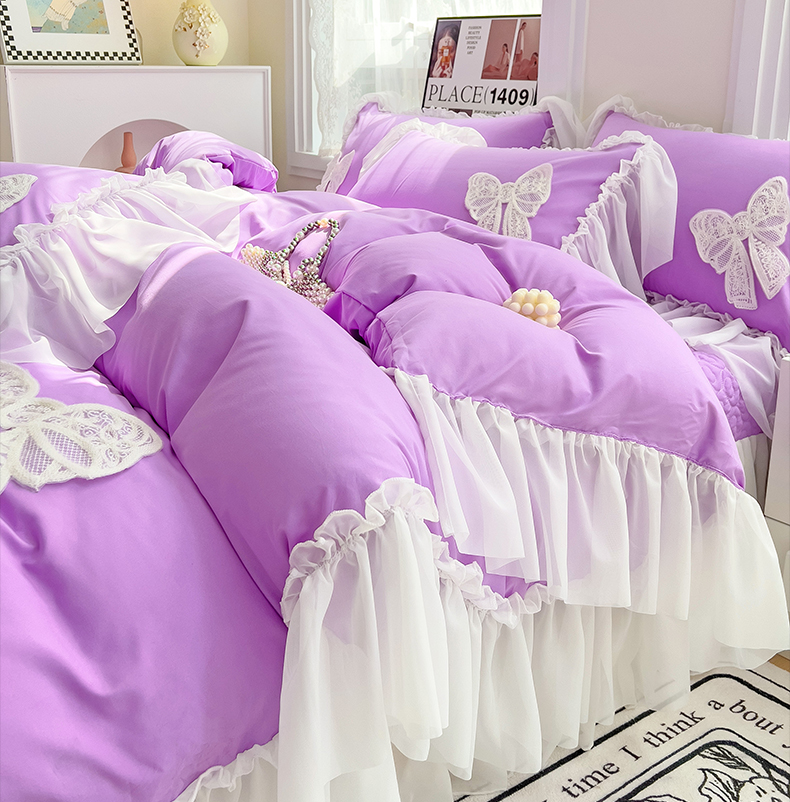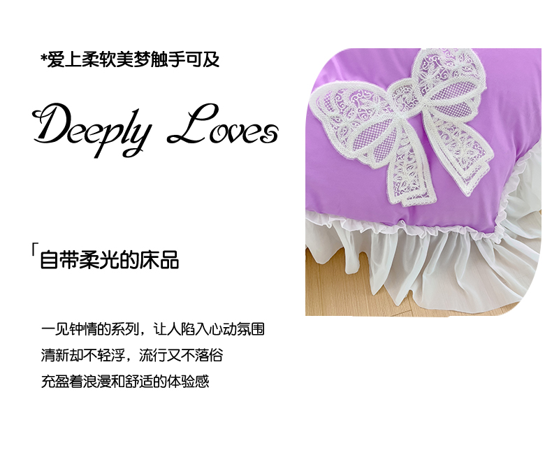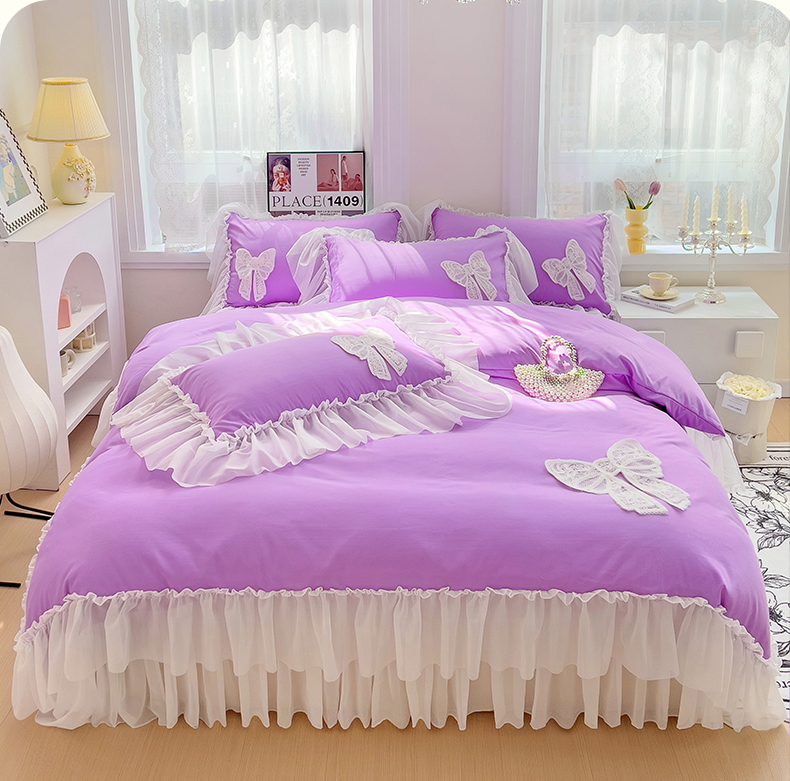 当前位置: 91家纺网 > 商品网购 > 床品套件 > 四件套 > 其它四件套 > 言熙居家纺 2024新款韩版贴布绣雪纺花边床盖款四件套-初恋 初恋-紫