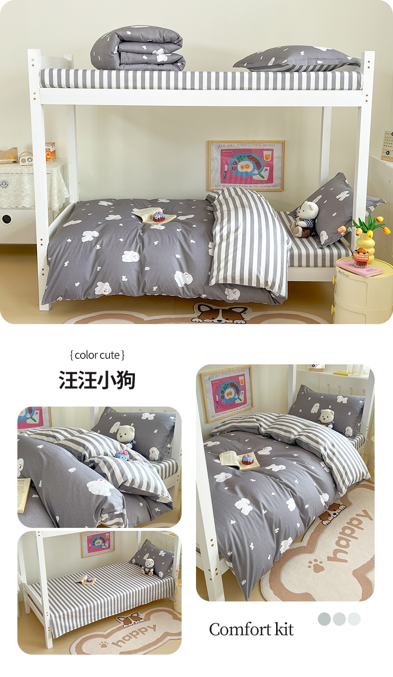绵庭家纺 2024新款全棉印花学生季宿舍三件套 汪汪小狗