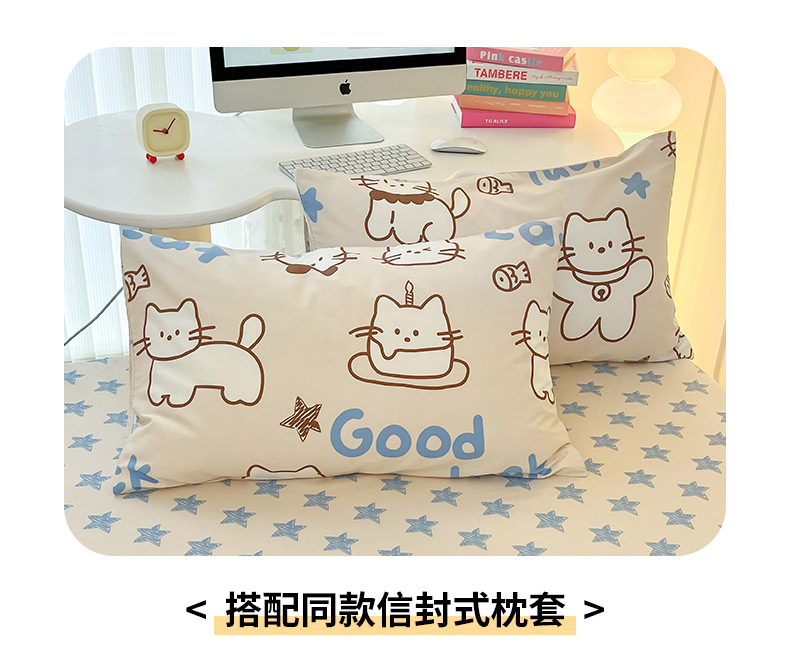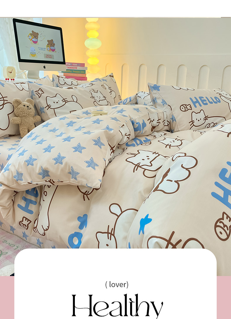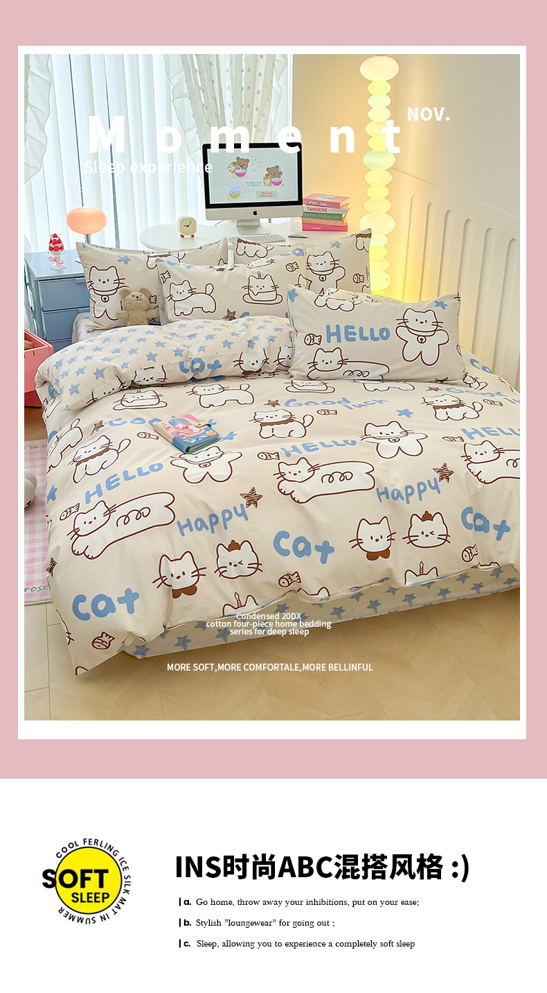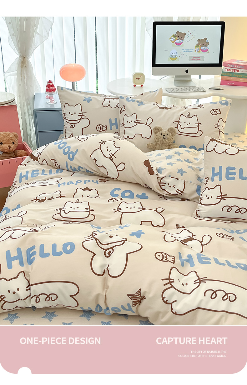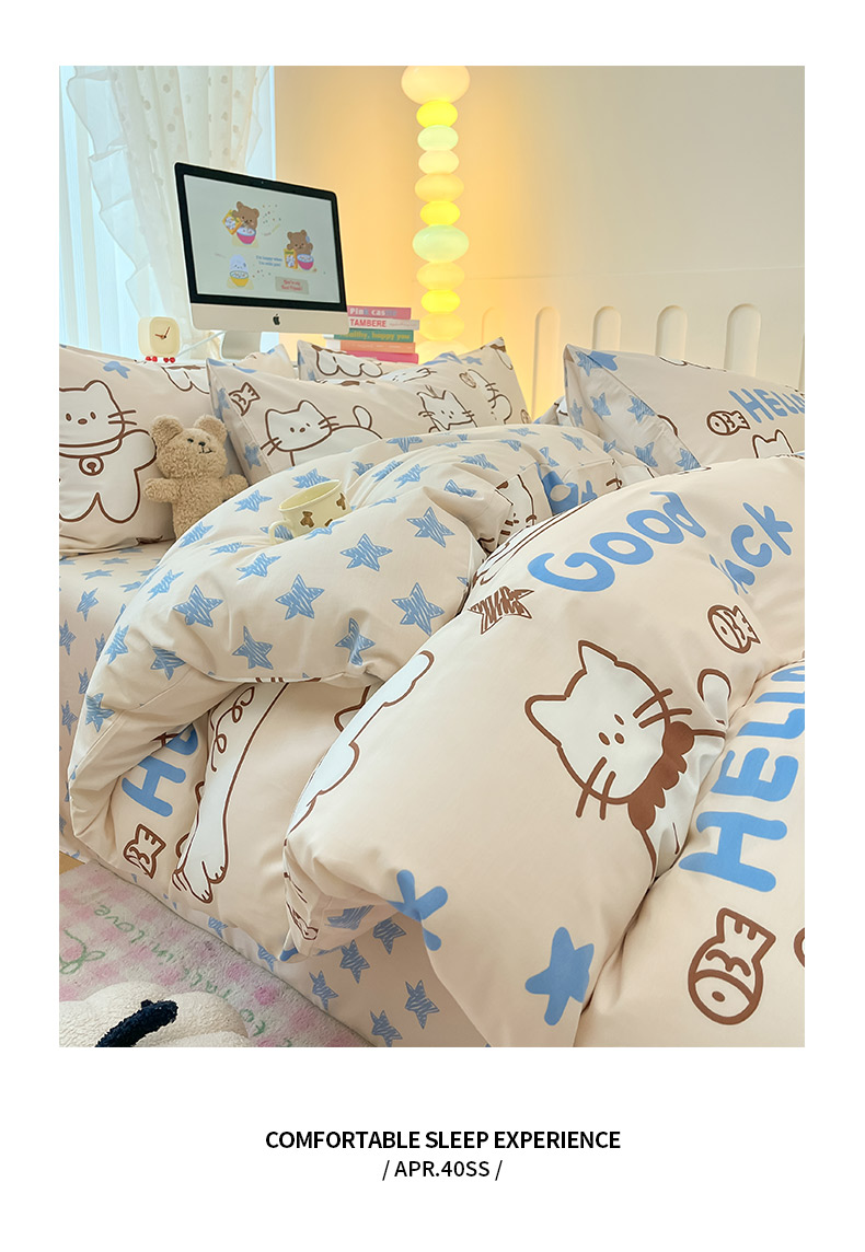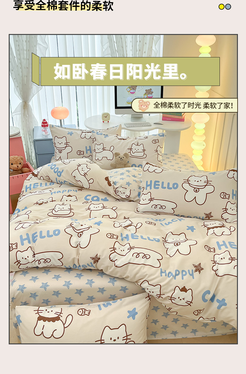 晨希家居 2024新款全棉卡通活性印花四件套幸运猫咪