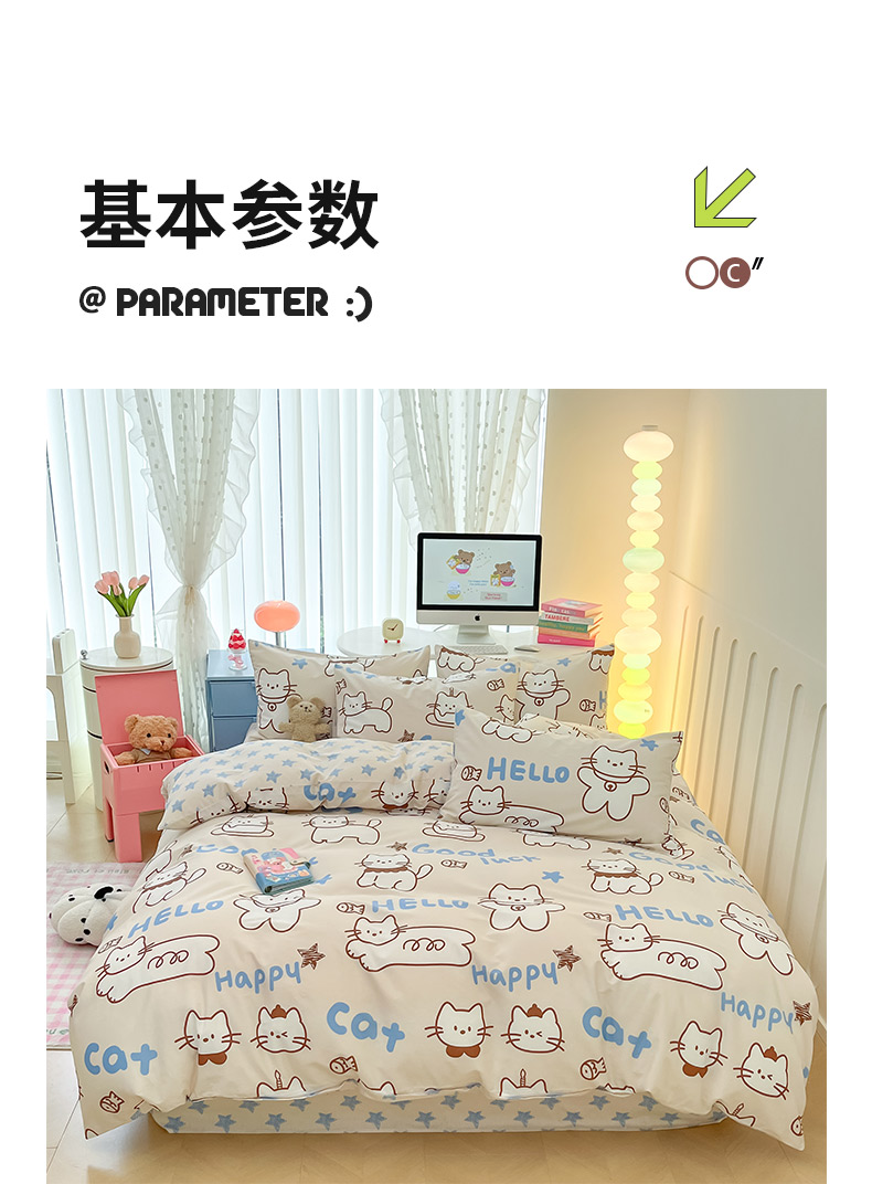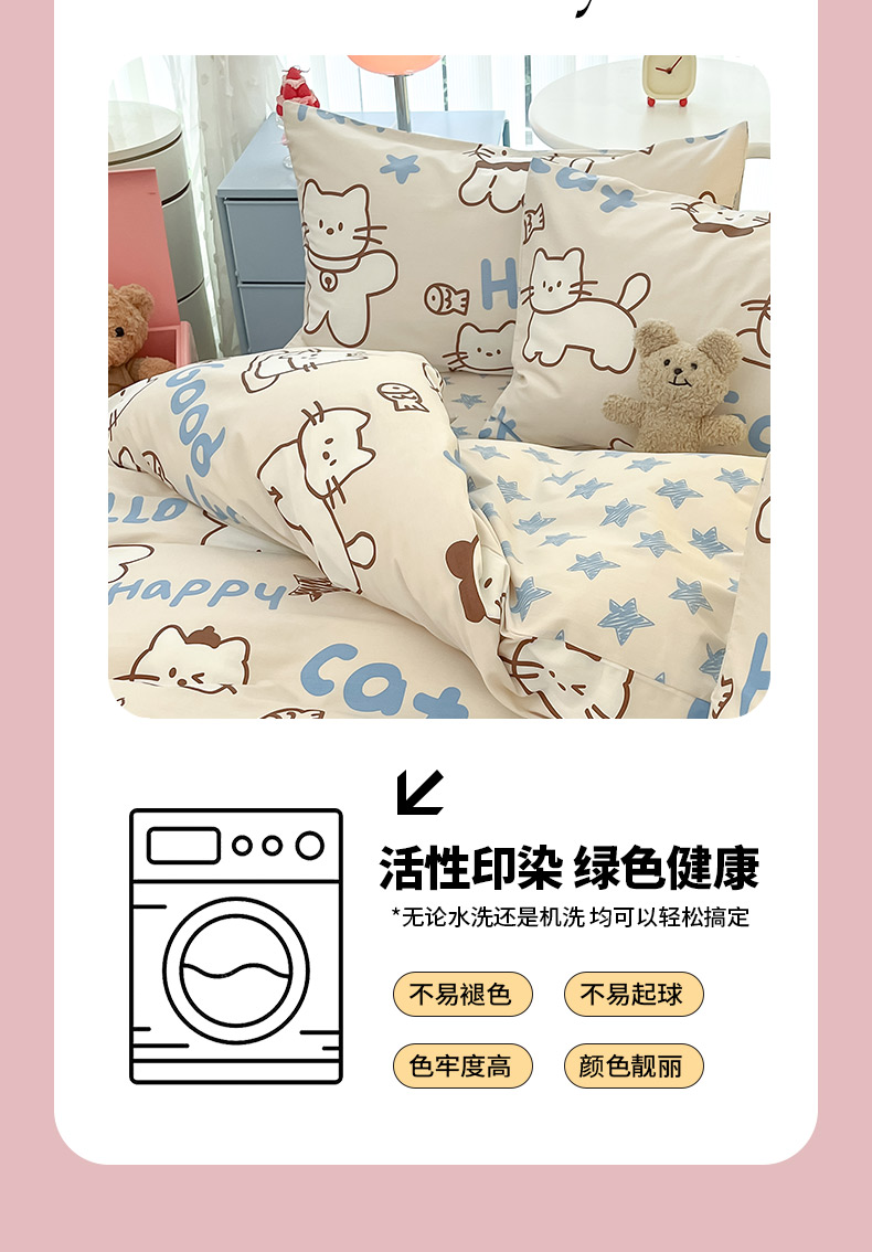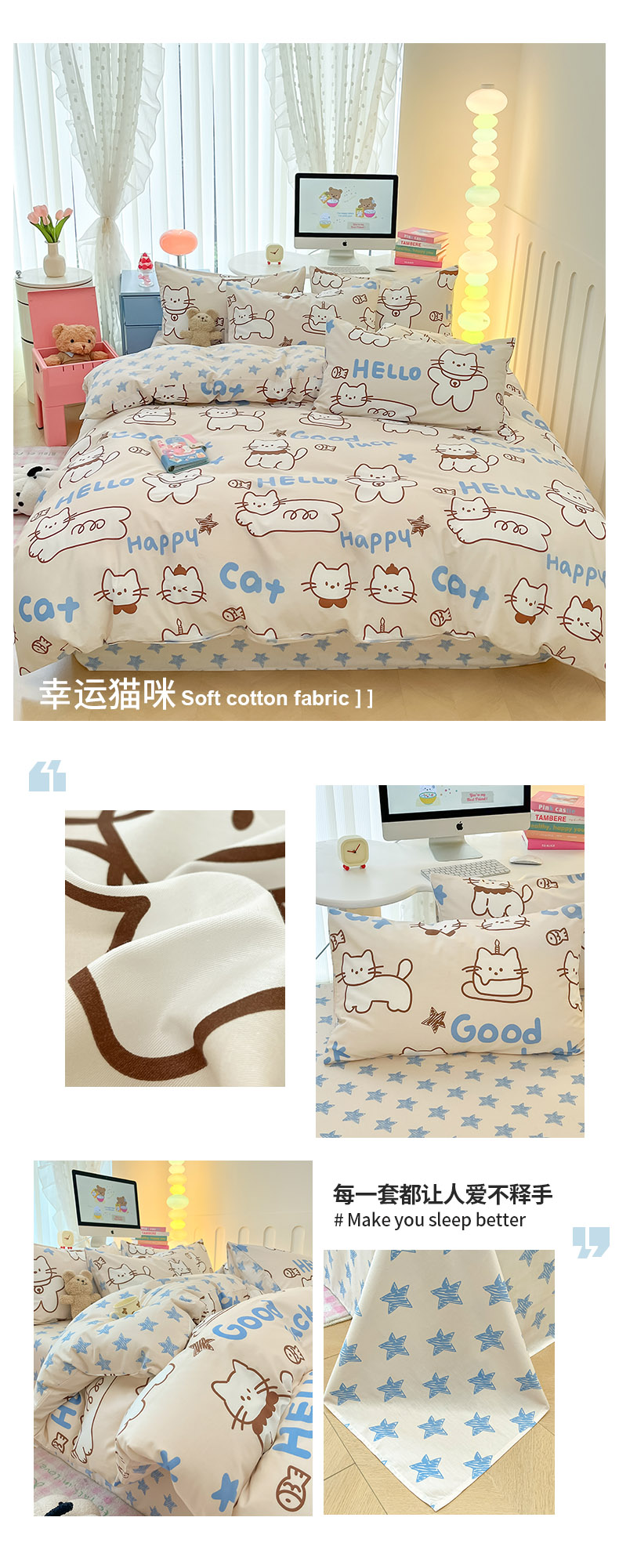 商品名称:晨希家居 2024新款全棉卡通活性印花四件套幸运猫咪