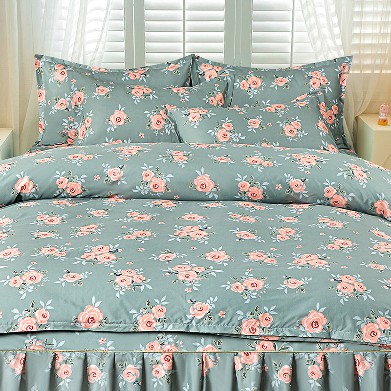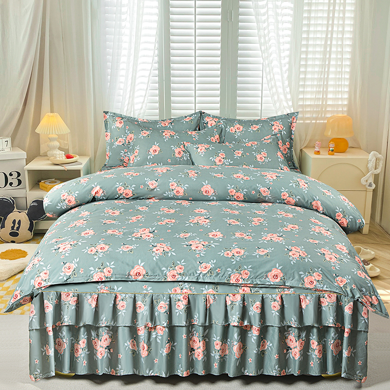 当前位置: 91家纺网 > 商品网购 > 床品套件 > 四件套 > 其它四件套 > 小雨家纺 2026新款芦荟棉床裙四件套 春暖花开深绿
