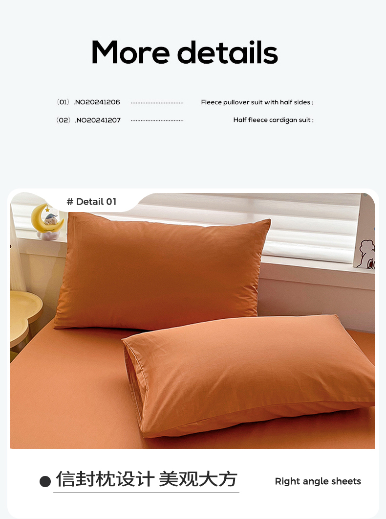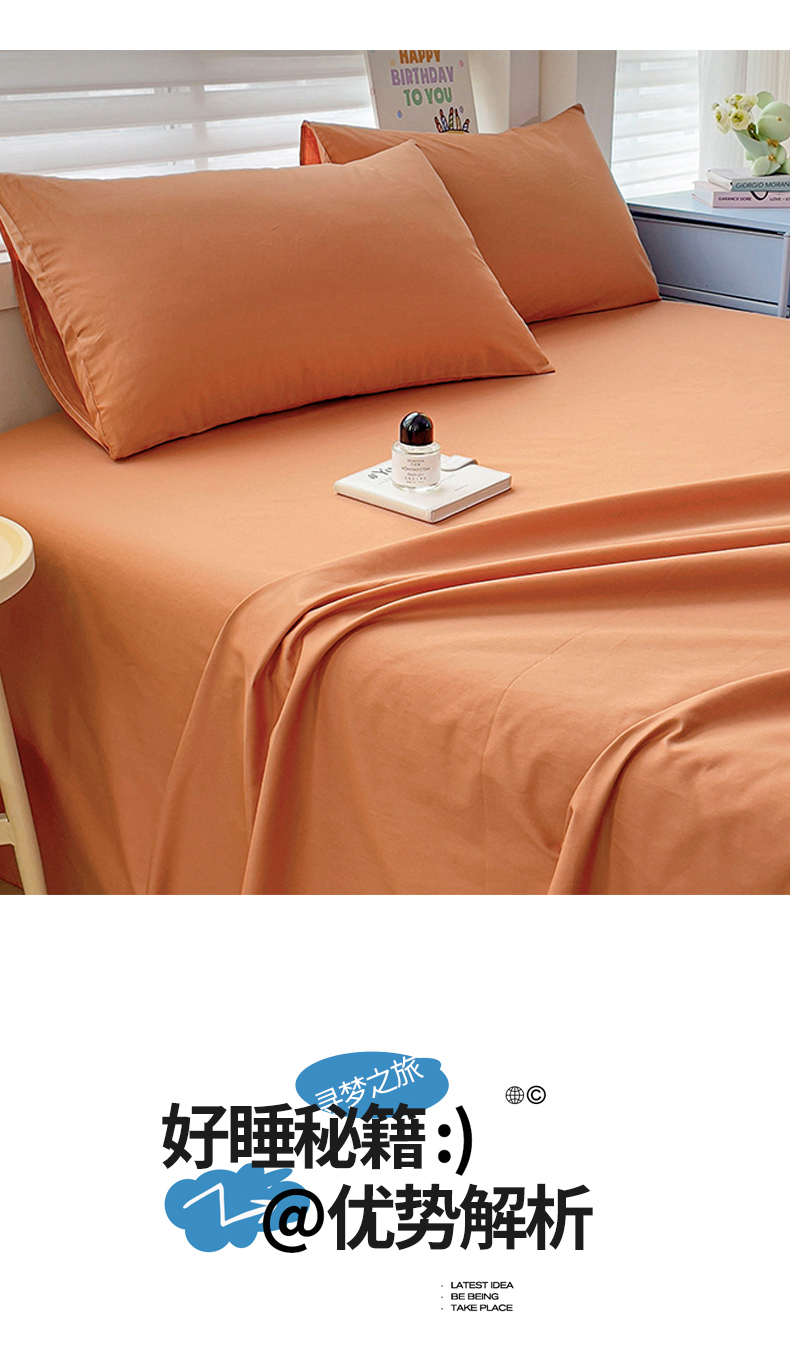 名兮家居 2024新款全棉纯色枕套 爱玛橙