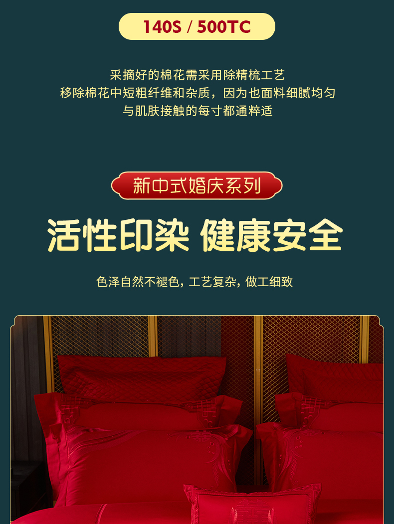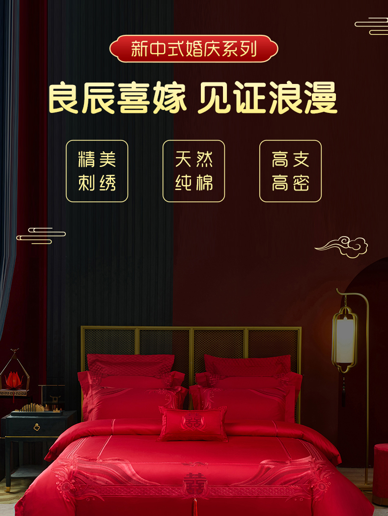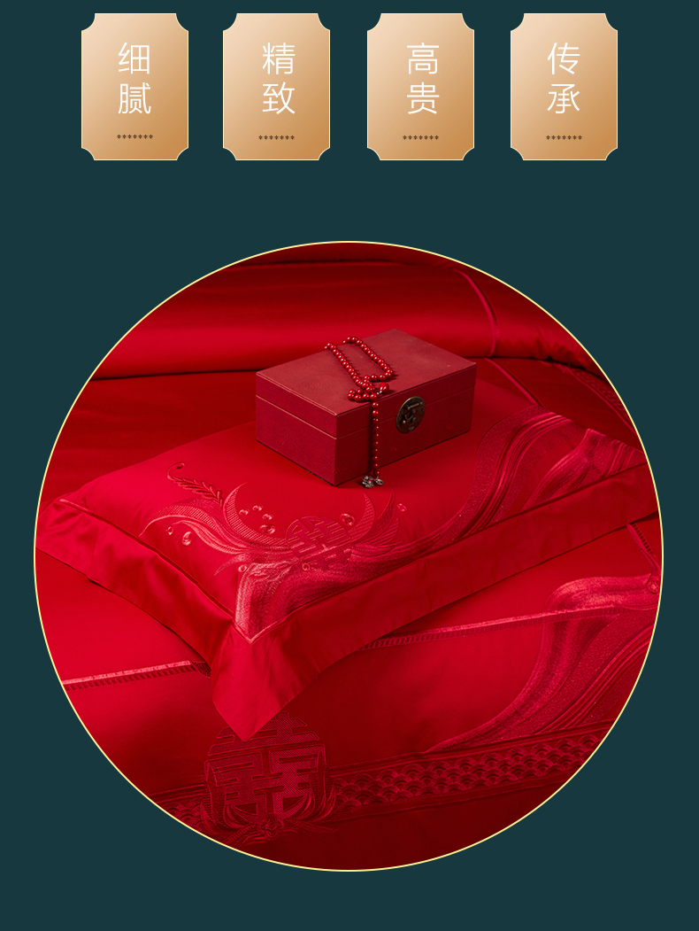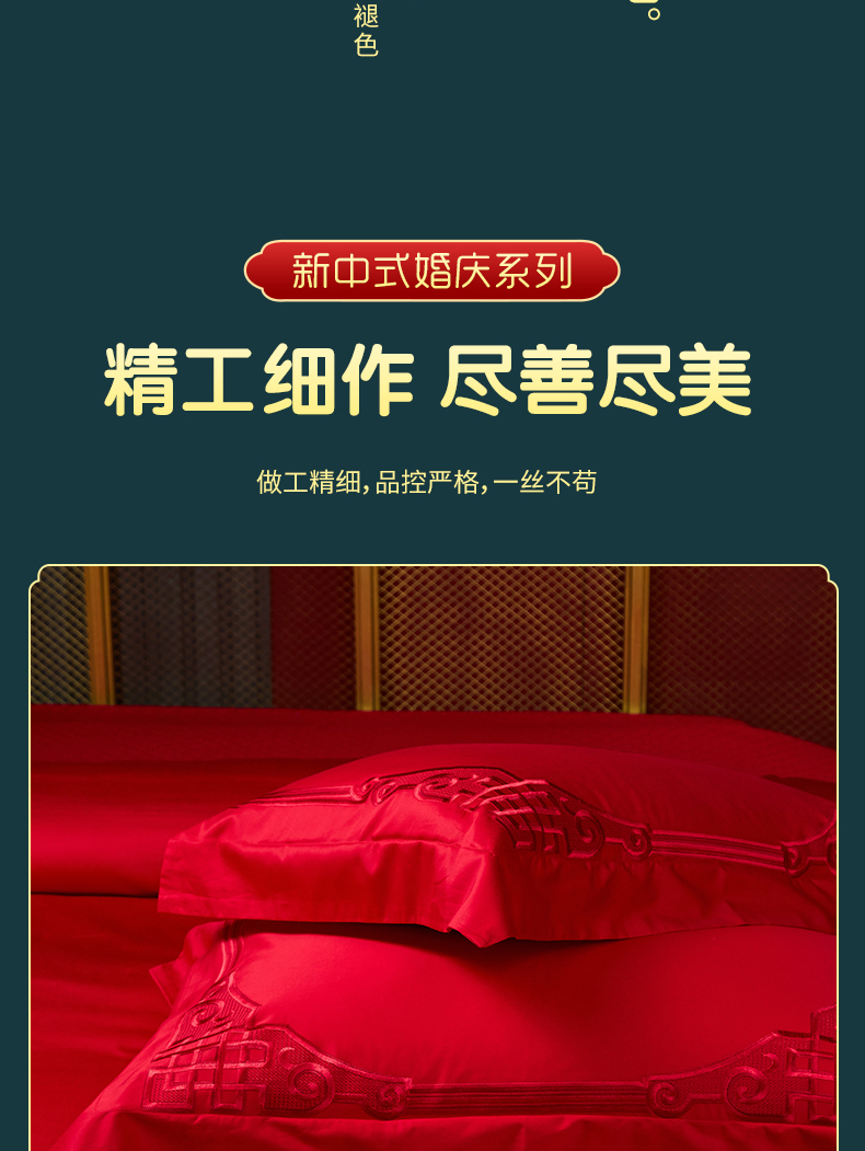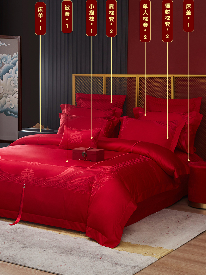 当前位置: 91家纺网 > 商品网购 > 床品套件 > 四件套 > 婚庆四件套 > 美娘阁 2025新款长绒棉贡缎新中式古典韵味精美刺绣婚庆四件套多件套系列 缘定三生(红)
