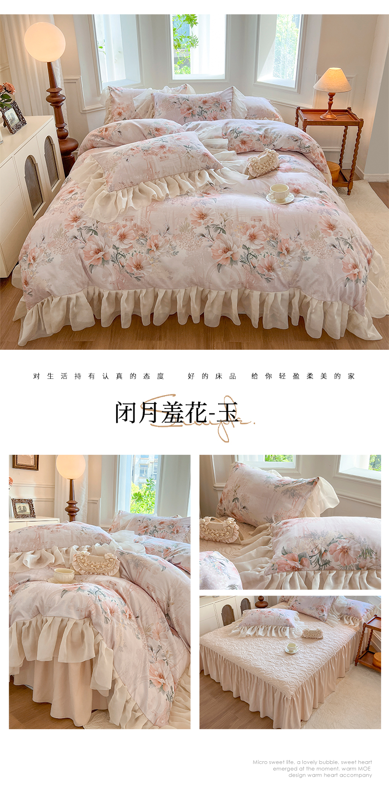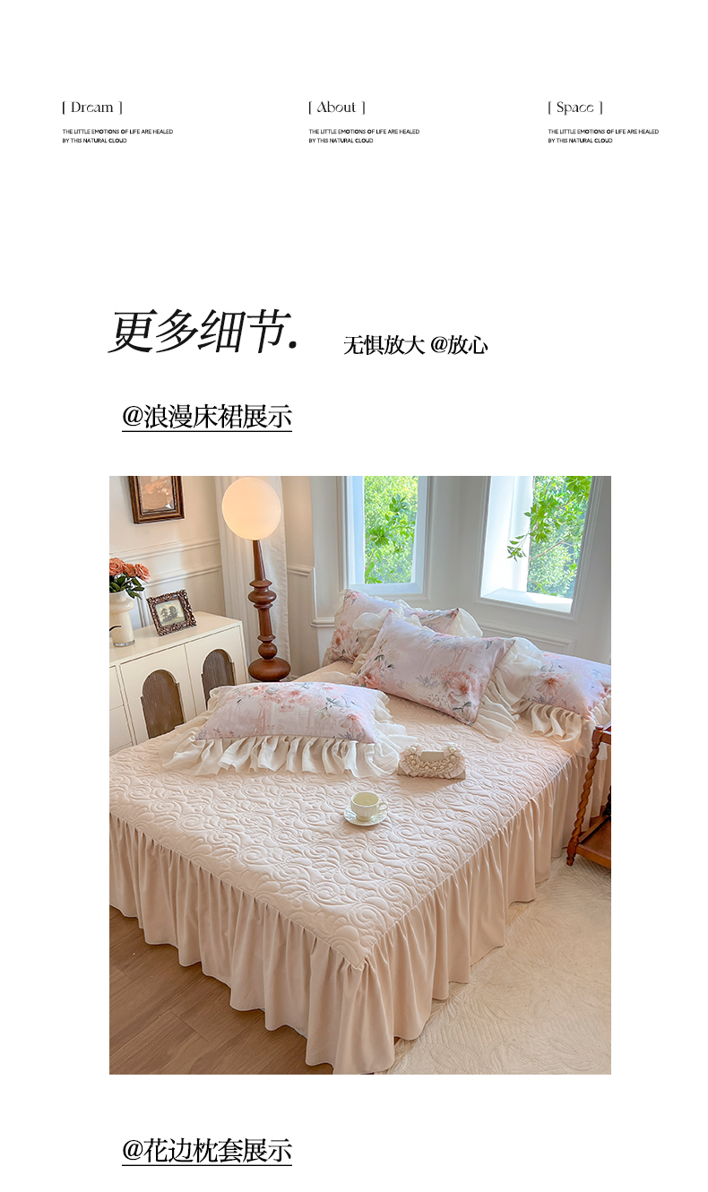 (总)网红馆(ck家纺) 2026新款全棉蕾丝花边床裙款床笠晨暮花间系列,绯红,粉色,麦绿,米色,浅紫,雾蓝