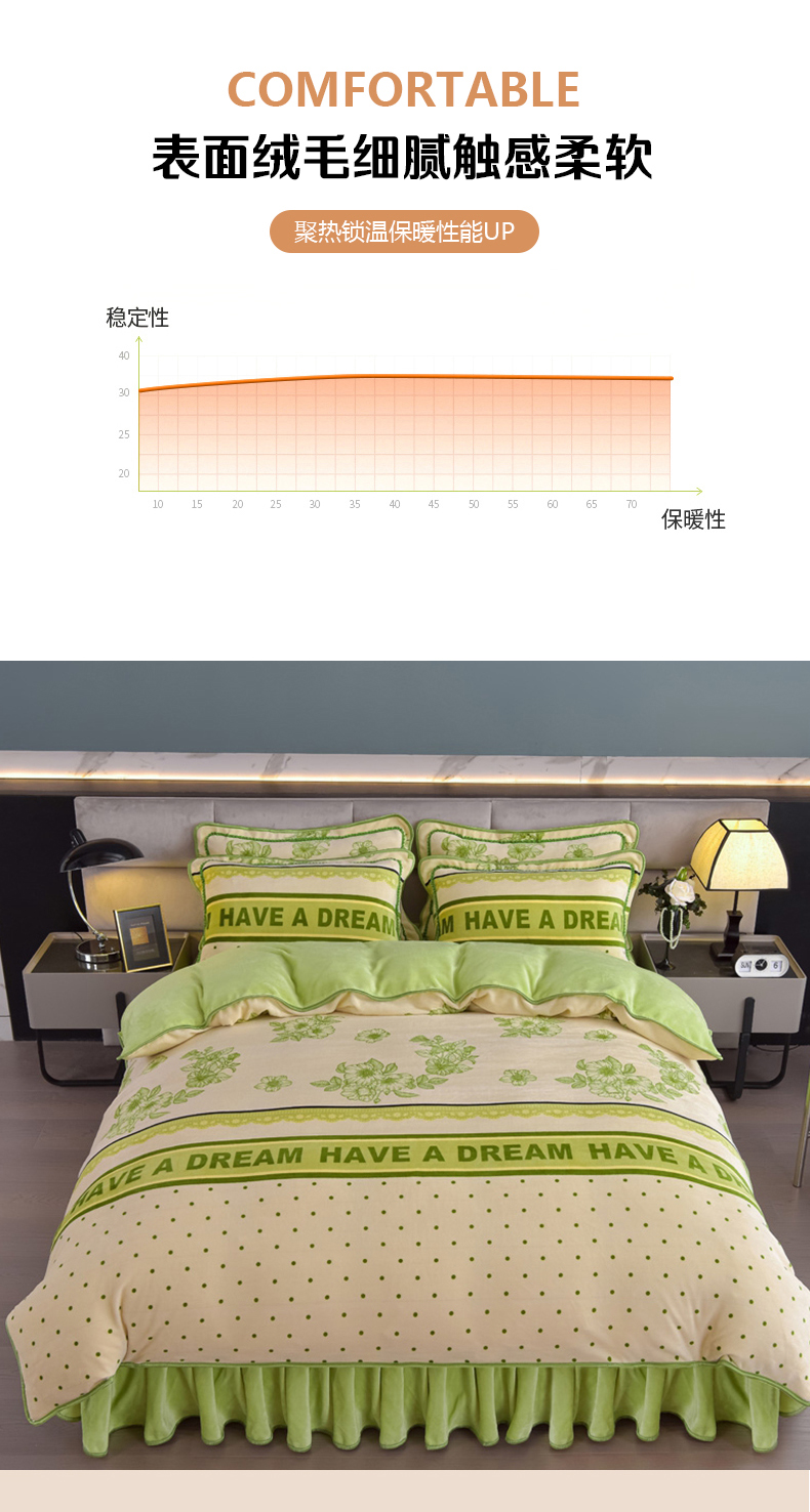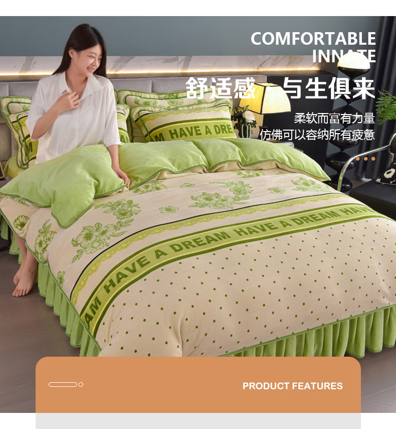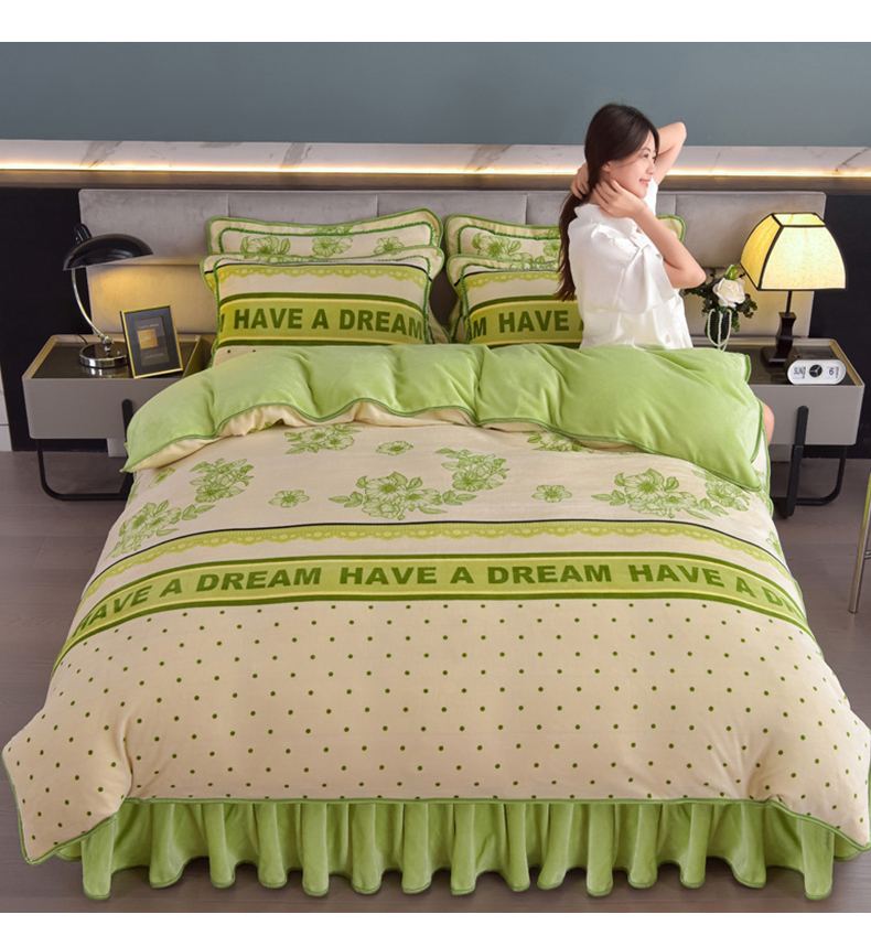 商品名称:锦铭源2025直播印花7斤牛奶绒金貂水晶法莱珊瑚绒四件套床裙款 遇见