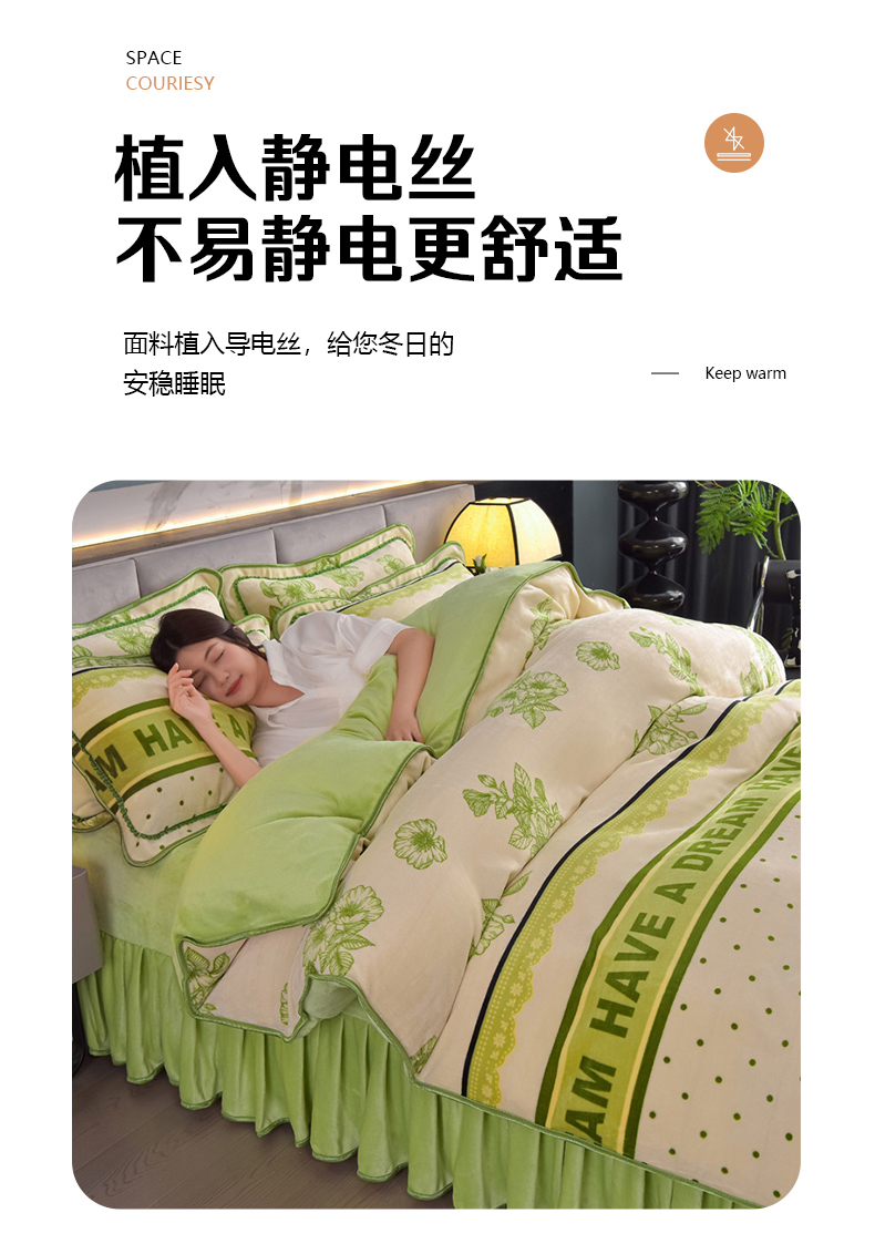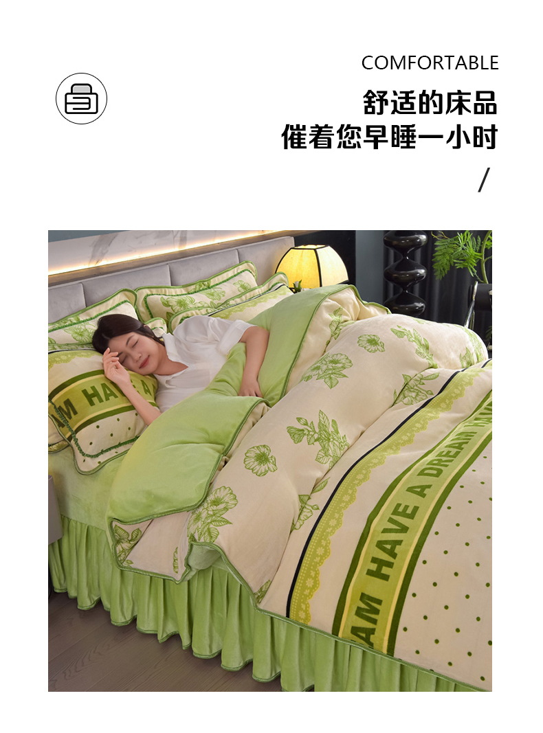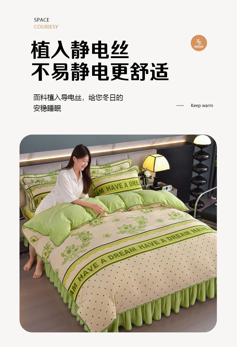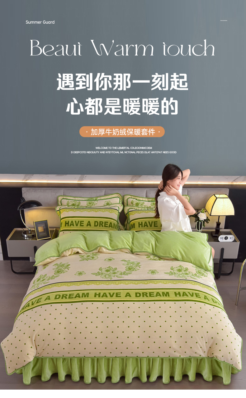 锦铭源2025直播印花7斤牛奶绒金貂水晶法莱珊瑚绒四件套床裙款 遇见