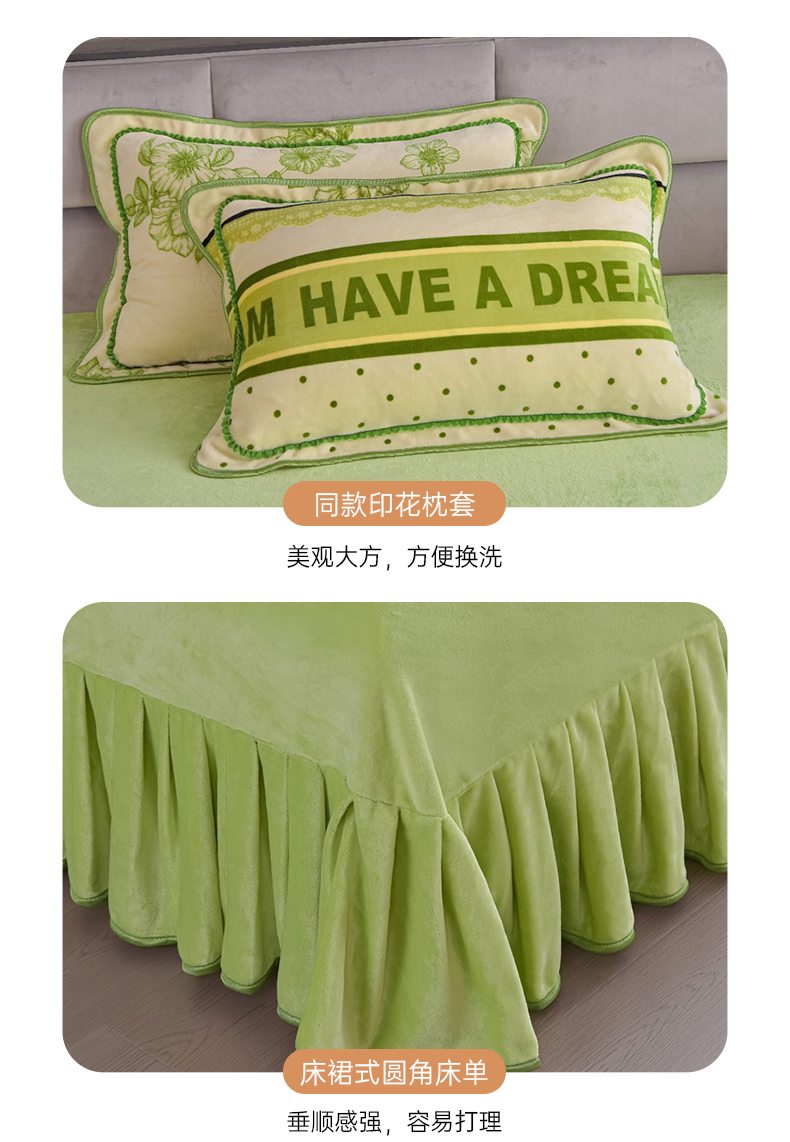 锦铭源2025直播印花7斤牛奶绒金貂水晶法莱珊瑚绒四件套床裙款花恋,花恋