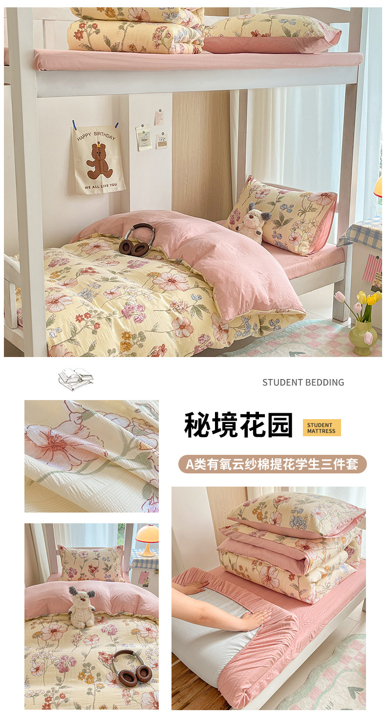 当前位置: 91家纺网 > 商品网购 > 床品套件 > 四件套 > 其它四件套 > 安哆啦家纺 2024新款A类有氧泡泡纱云纱棉学生季宿舍床三四件套 秘境花园