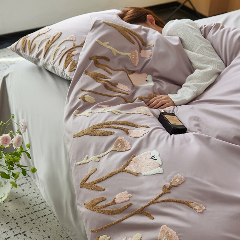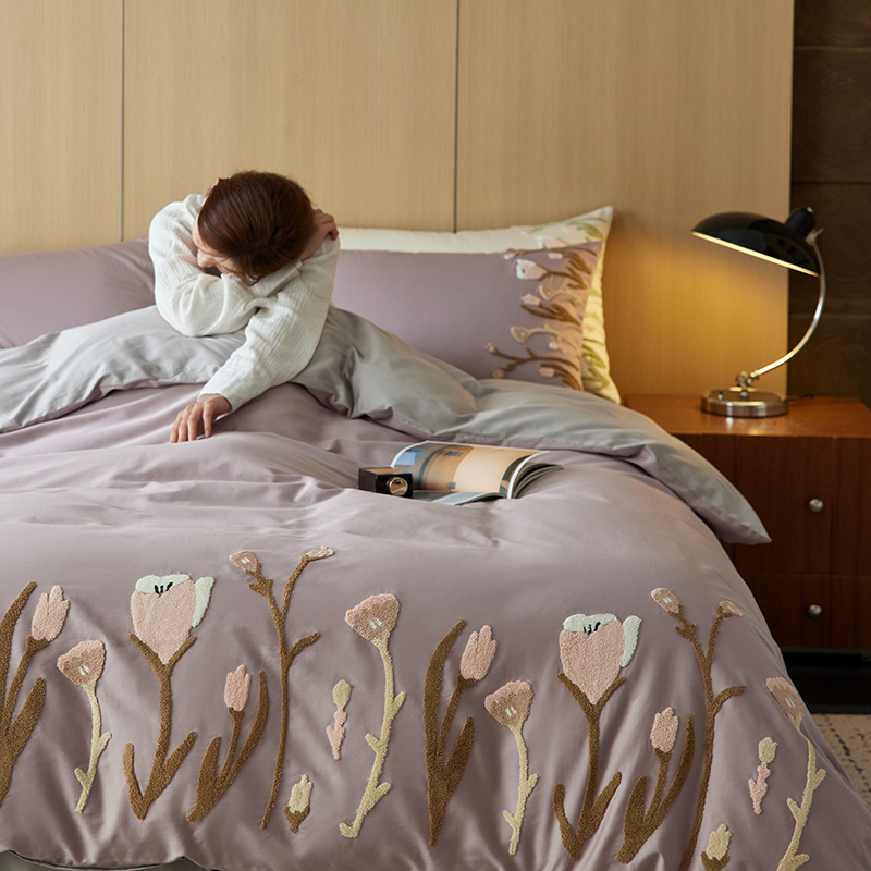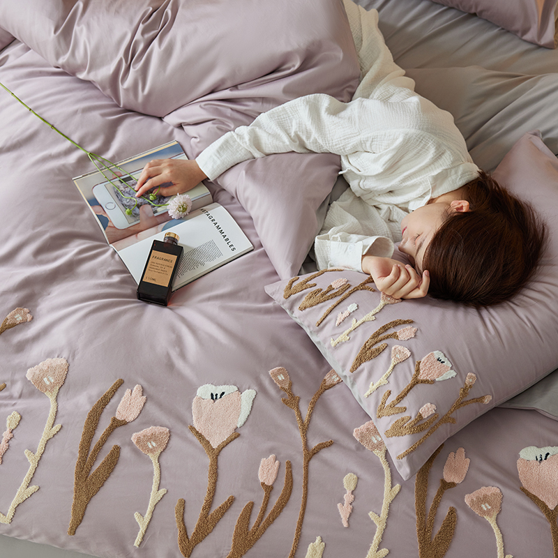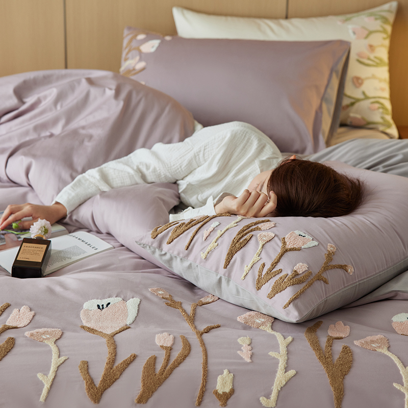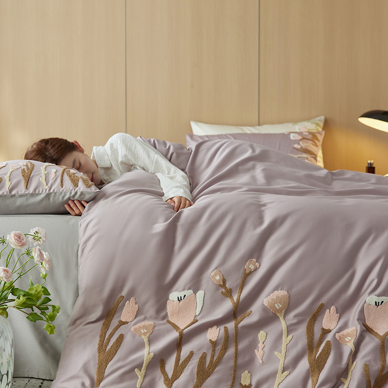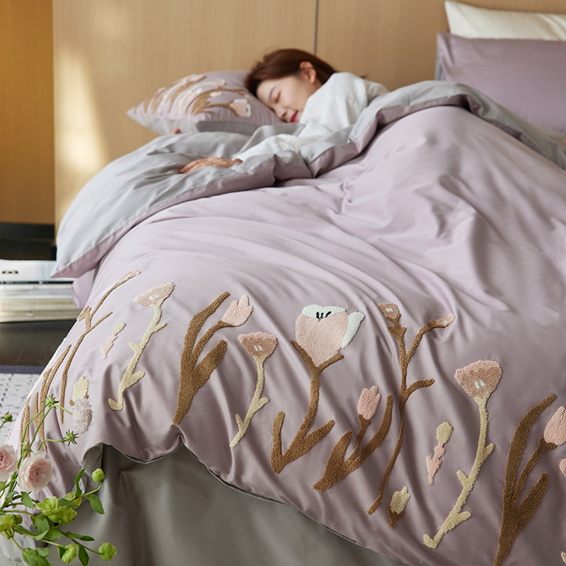商品名称:(总)初拾 2024新款100s澳棉毛巾绣四件套-春日