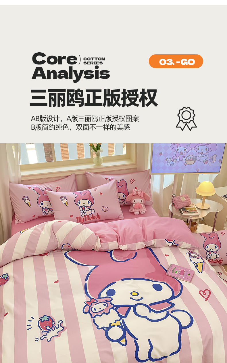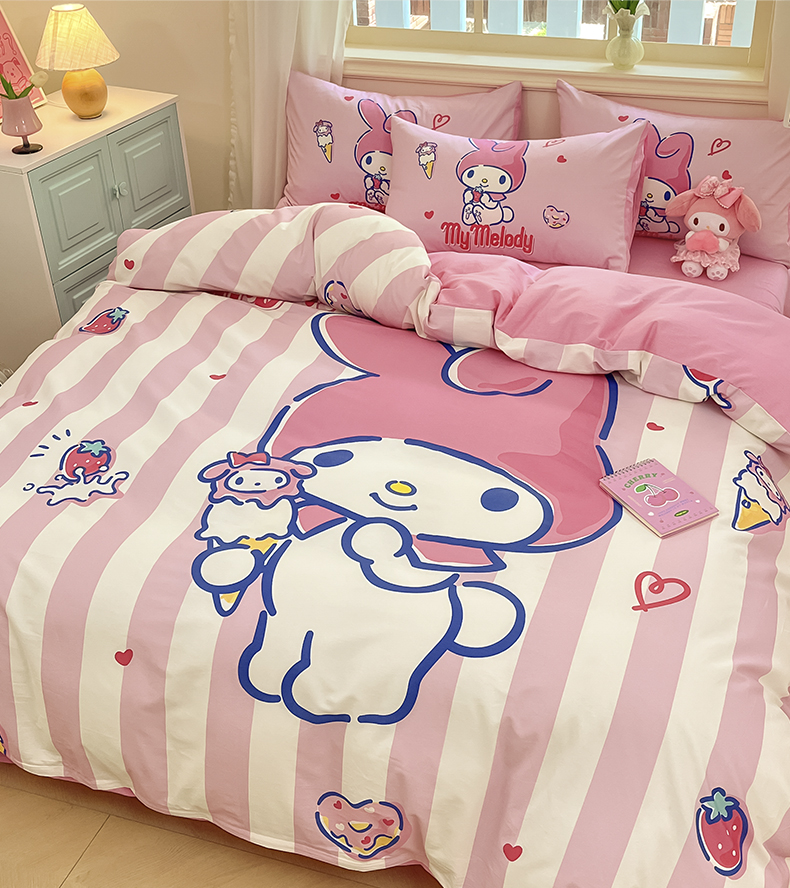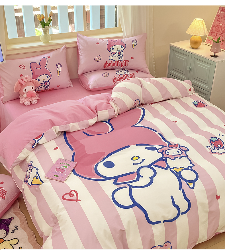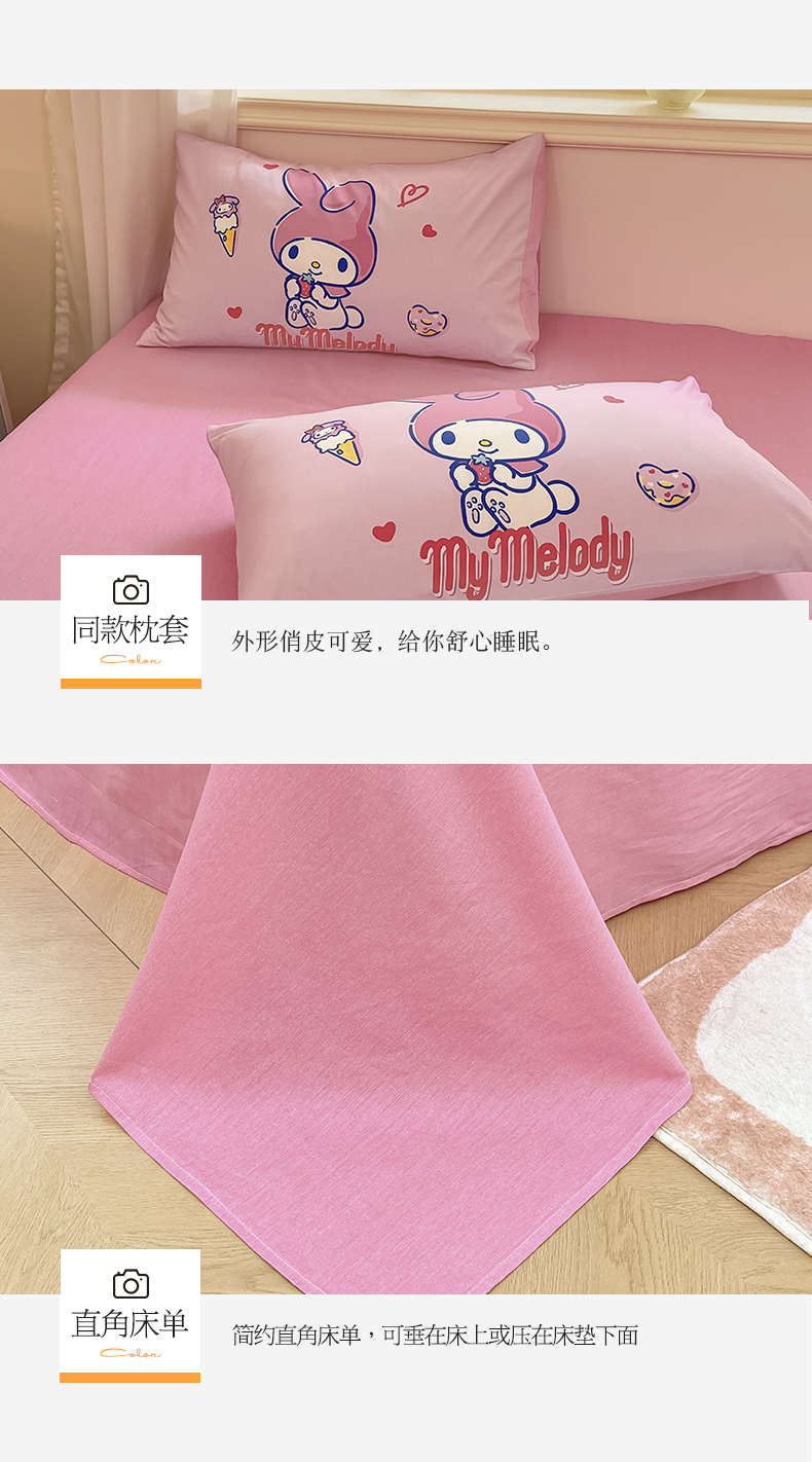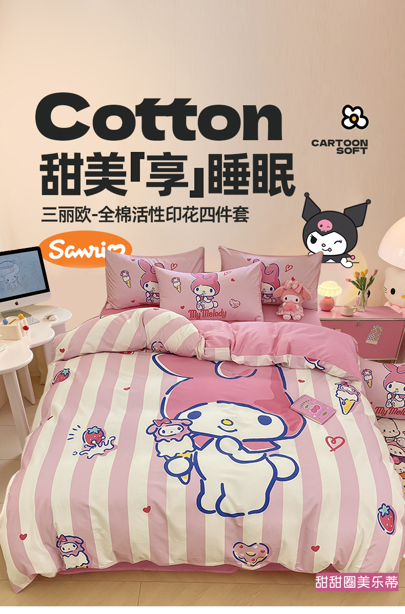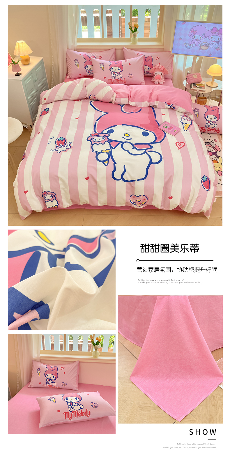 当前位置: 91家纺网 > 商品网购 > 床品套件 > 四件套 > 全棉普通四件套 > 桃子家居 2024纯棉大版三丽鸥卡通平网印花系列四件套 棉大版-D甜甜圈美乐蒂
