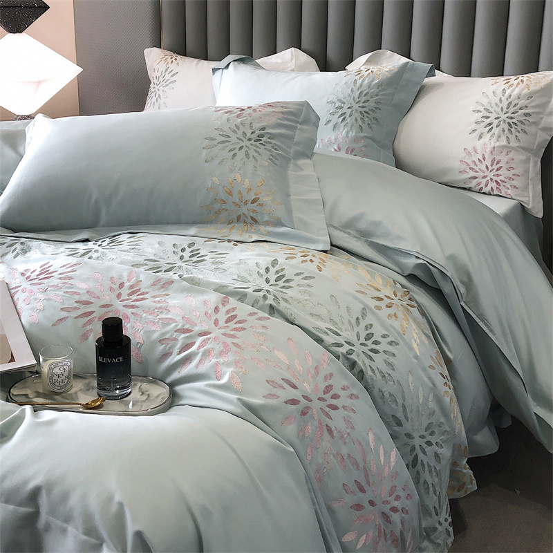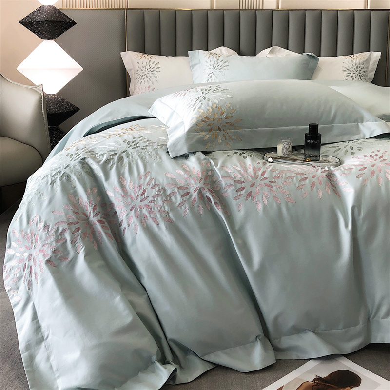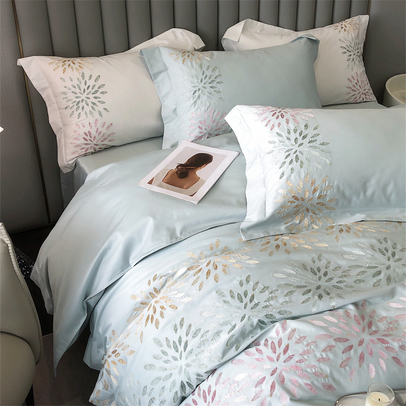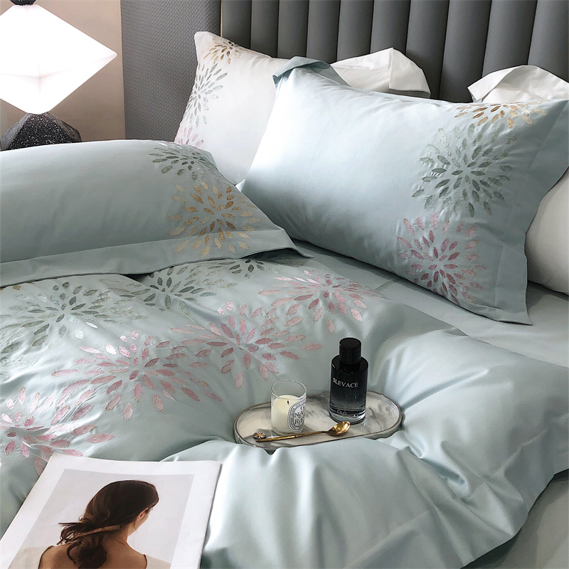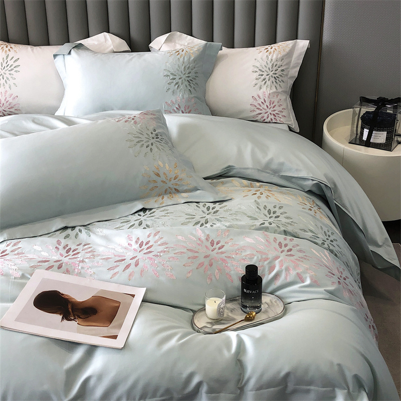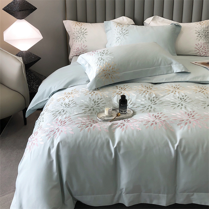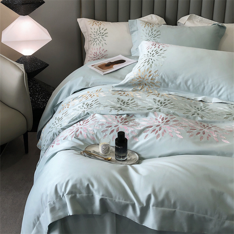 鹿班家居 2024新款100支长绒棉精密刺绣系列四件套-南乔 南乔-青白