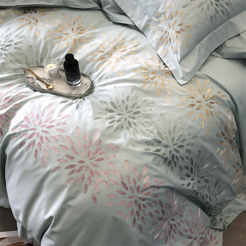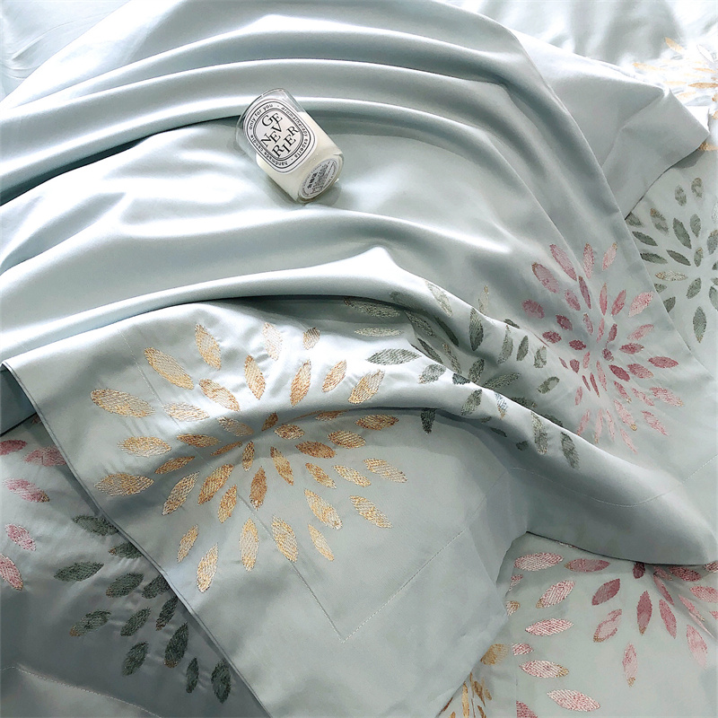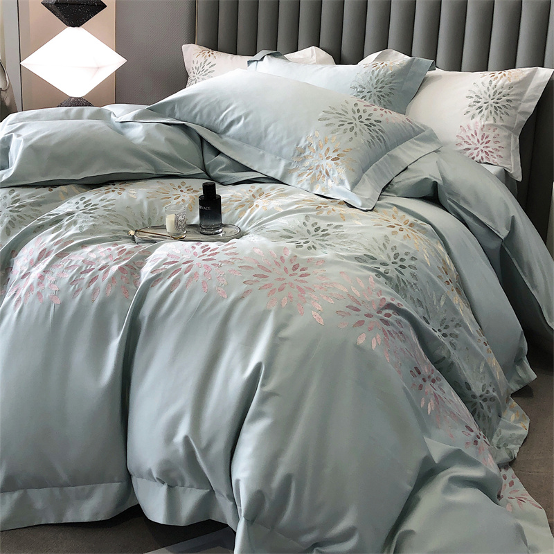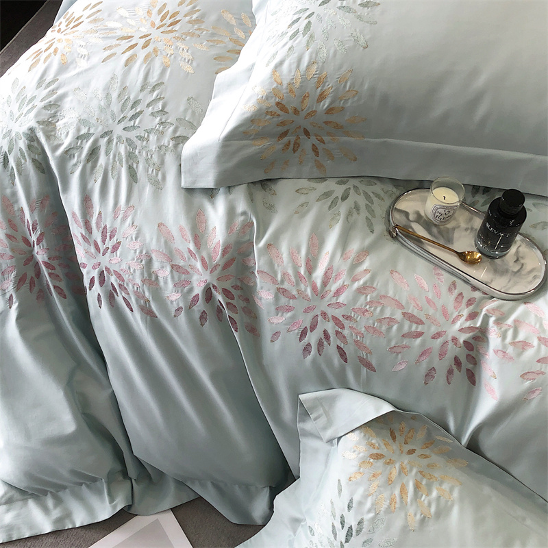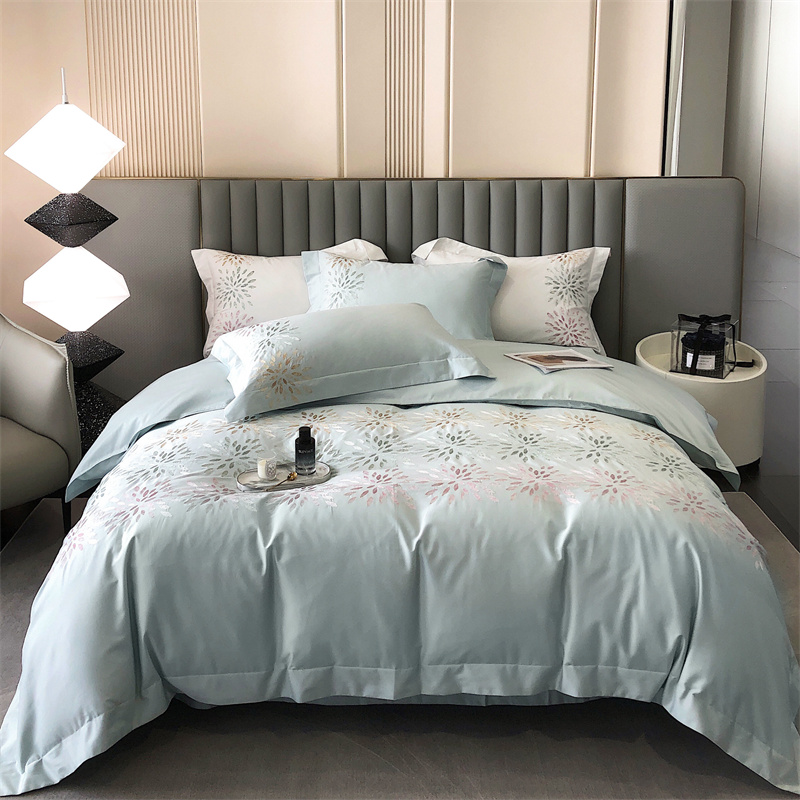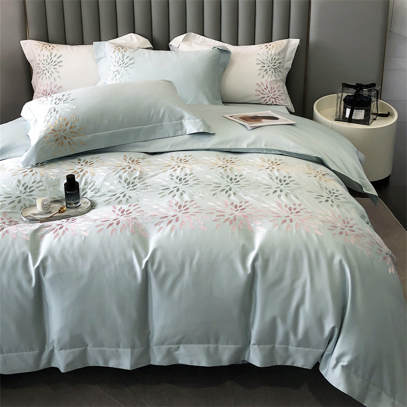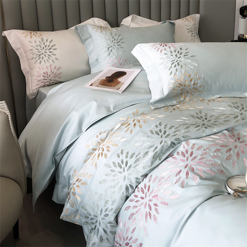 鹿班家居 2024新款100支长绒棉精密刺绣系列四件套-南乔 南乔-青白
