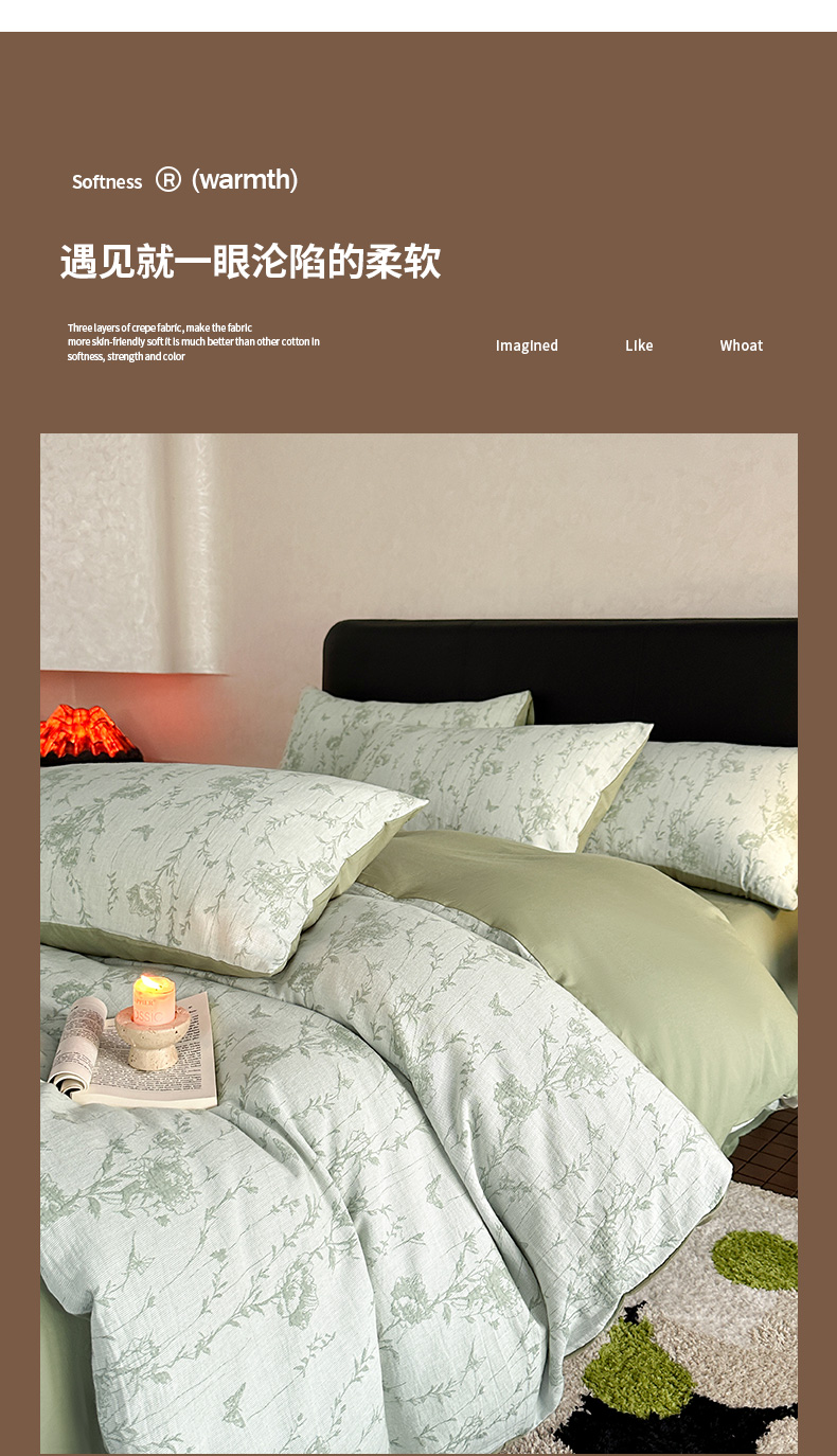 当前位置: 91家纺网 > 商品网购 > 床品套件 > 四件套 > 全棉普通四件套 > 2024新款A类全棉三层纱提花四件套--茵荔 茵荔-绿