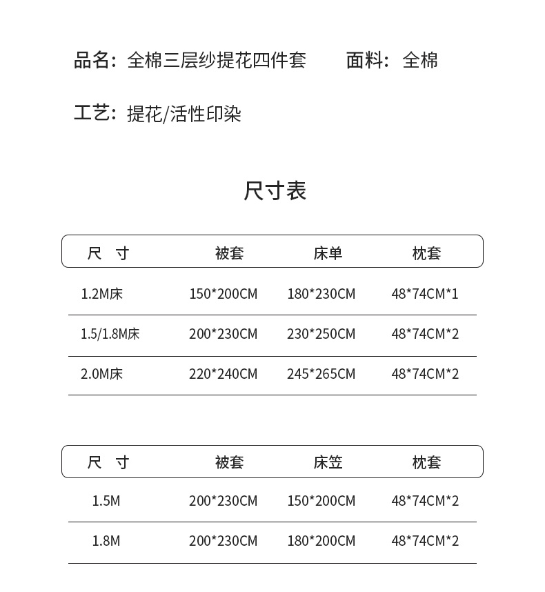 1.2m床单款三件套 | ¥135.00 |