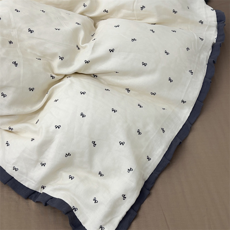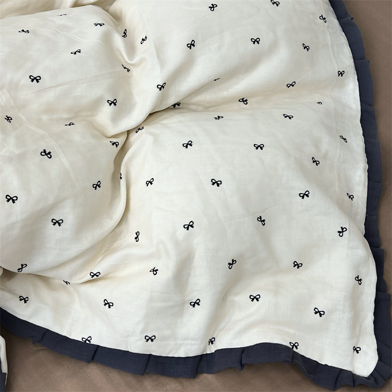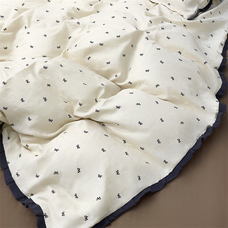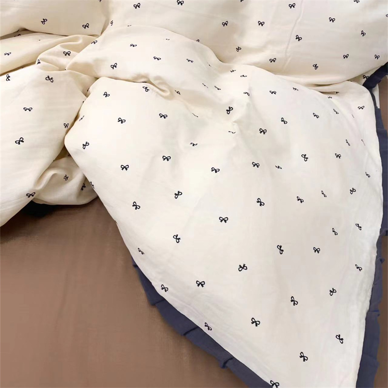 荣轩 2024新款全棉印花双层纱四件套 皱皱纱花边款 花边 蝴蝶可颂