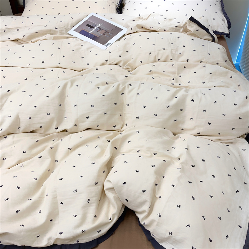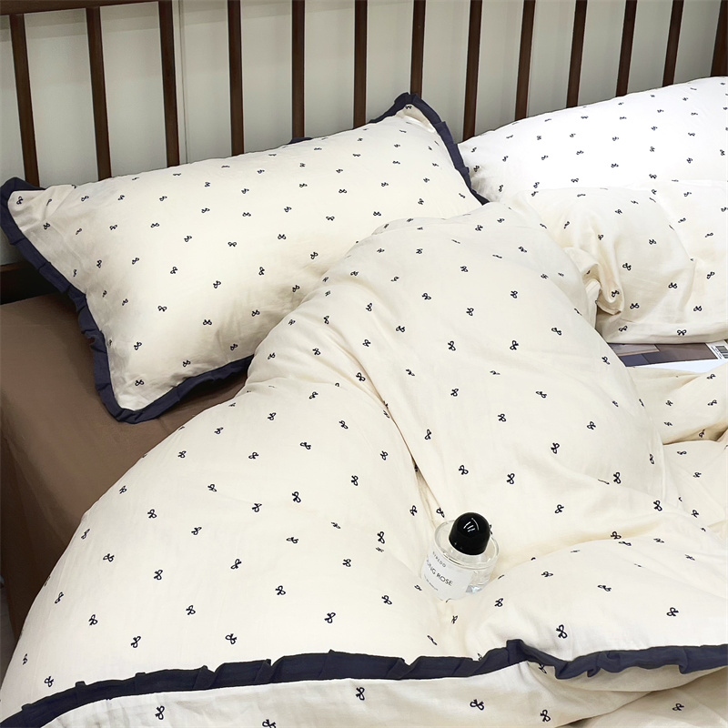 商品名称:荣轩 2024新款全棉印花双层纱四件套 皱皱纱花边款 花边 蝴蝶可颂